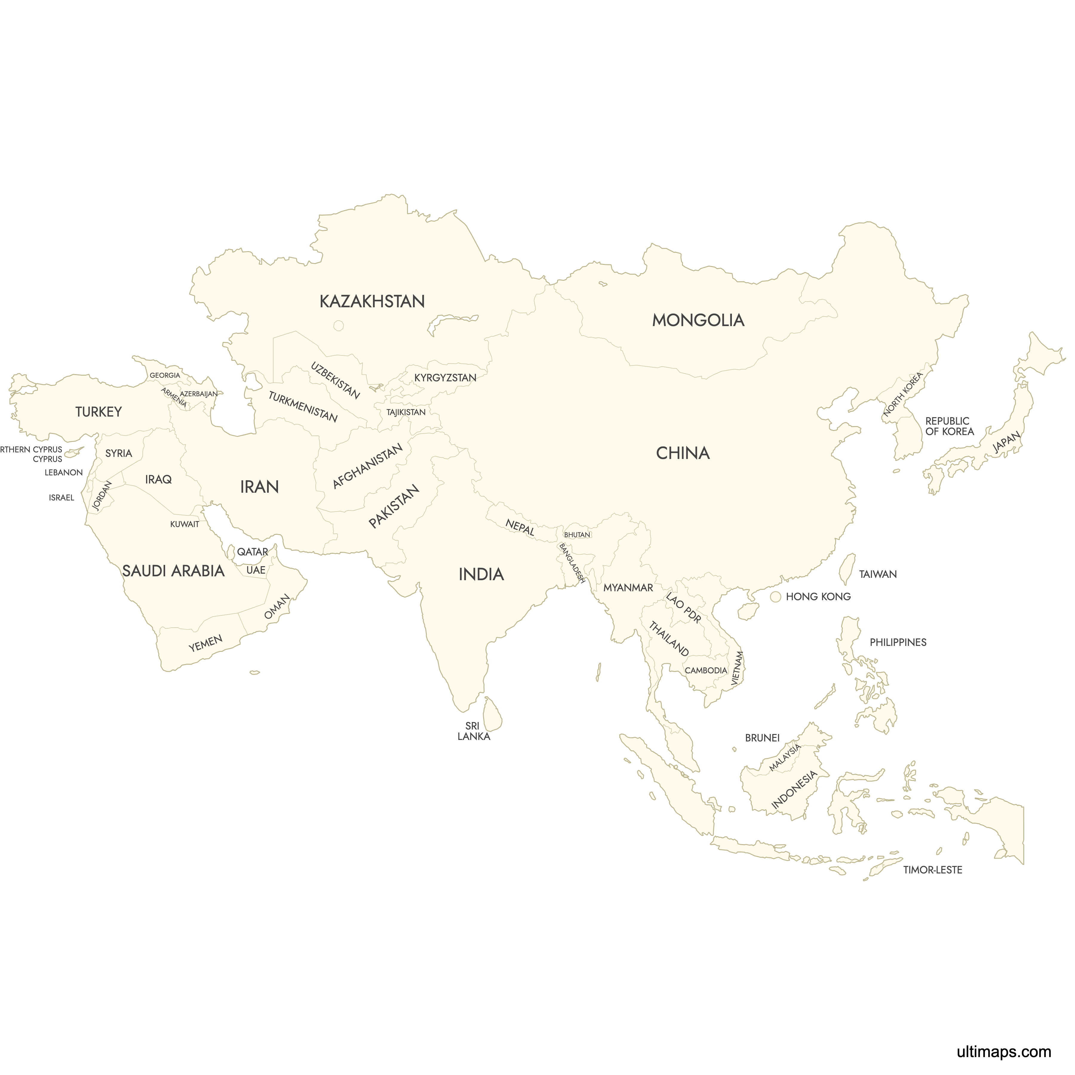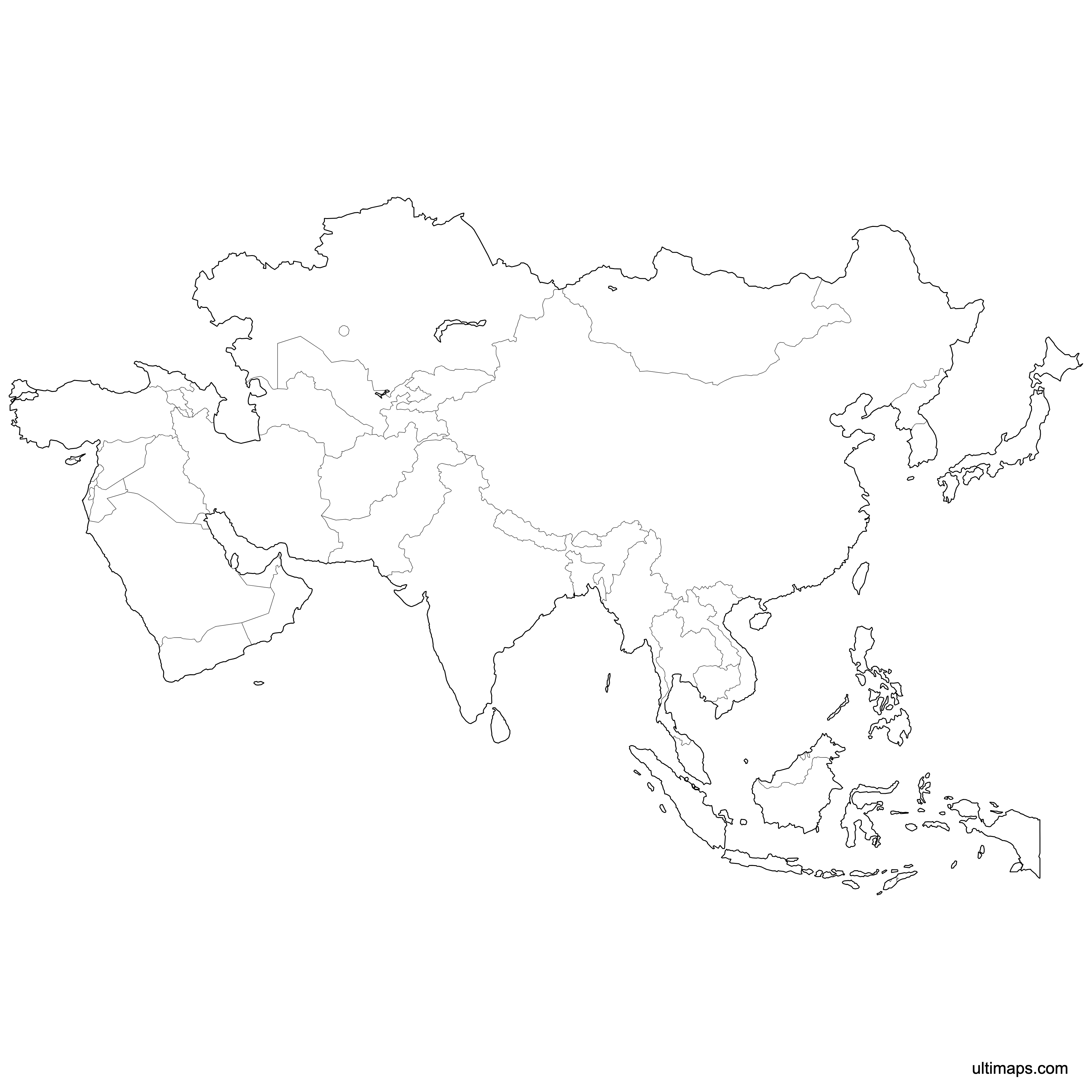 Download free blank Map of Asia in high-resolution PNG, PDF and SVG formats. Perfect for printing, coloring, presentations, and educational projects. Most of the maps available in different color schemes and with different features (such as labels, roads or rivers).