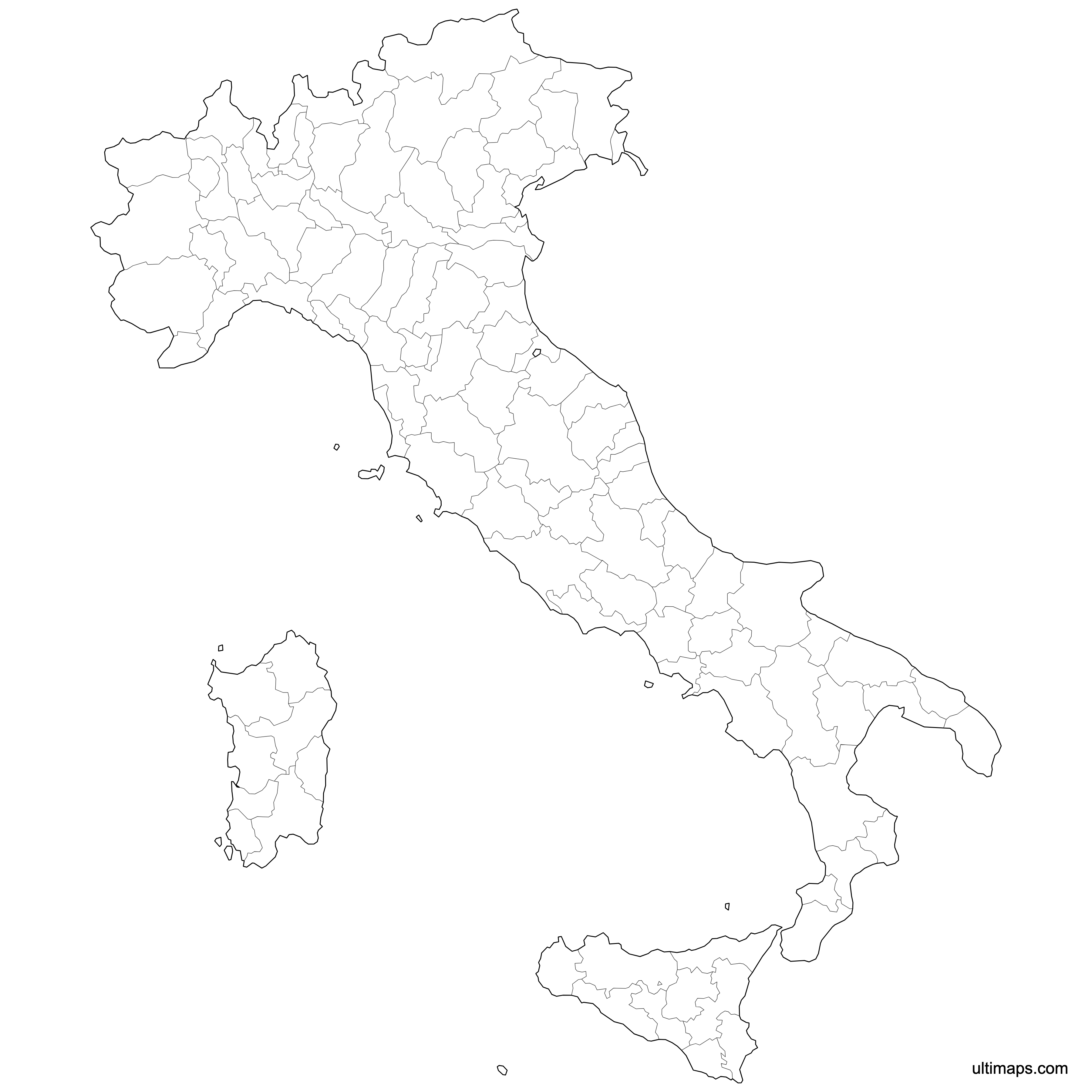Download free blank Map of Italy Provinces in high-resolution PNG, PDF and SVG formats. Perfect for printing, coloring, presentations, and educational projects. Most of the maps available in different color schemes and with different features (such as labels, roads or rivers).