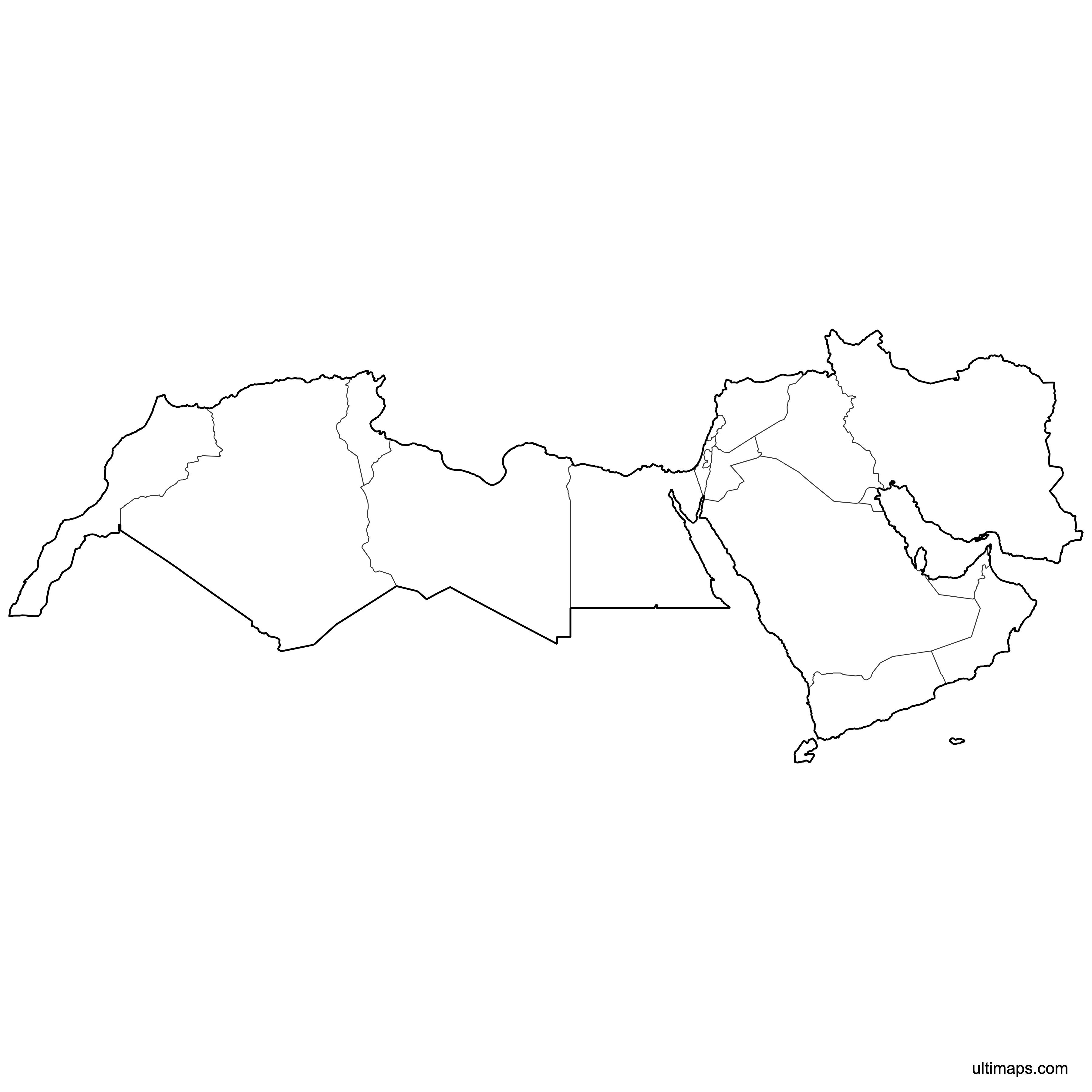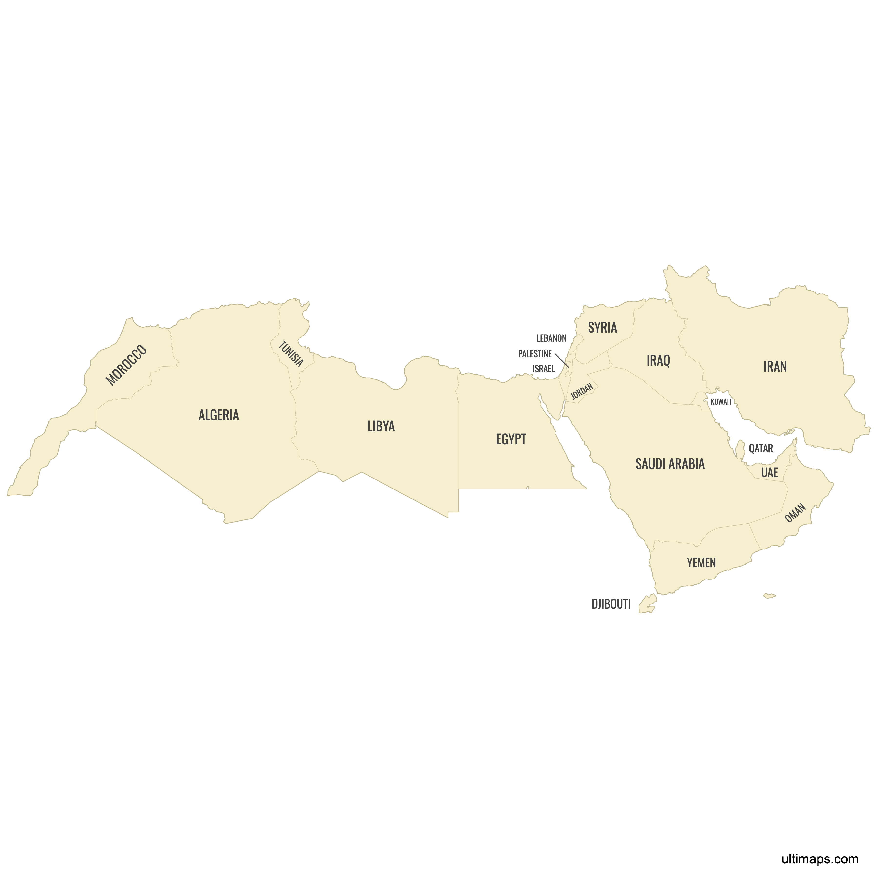 Below you can download free blank Map of MENA Countries in high resolution PNG or SVG formats suitable for printing or further editing. Most of the maps available in different color schemes and with different features (such as labels, roads or rivers). PNG maps are in 3600x3600px resolution and come with a transparent background.