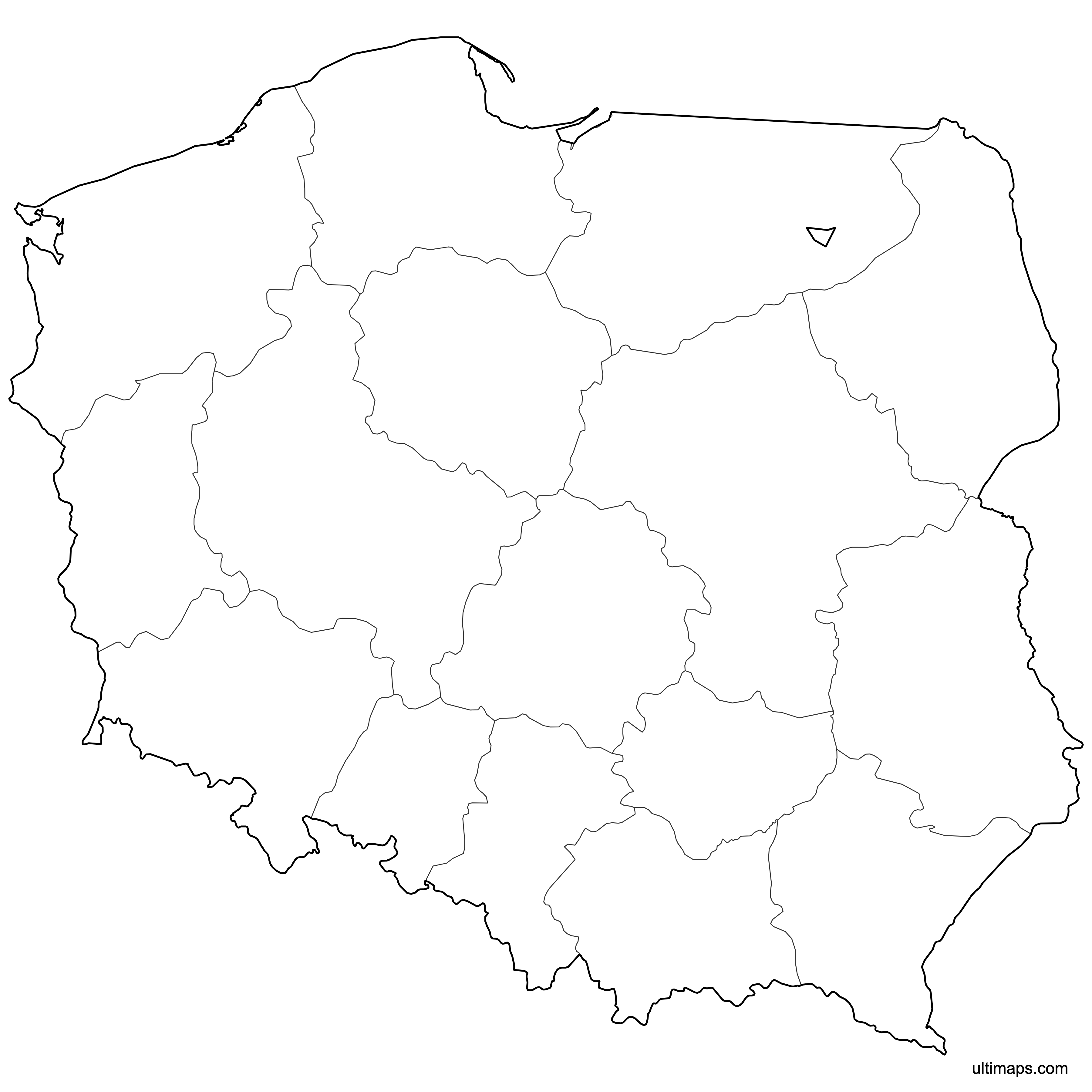 Below you can download free blank Map of Poland Provinces in high resolution PNG or SVG formats suitable for printing or further editing. Most of the maps available in different color schemes and with different features (such as labels, roads or rivers). PNG maps are in 3600x3600px resolution and come with a transparent background.
