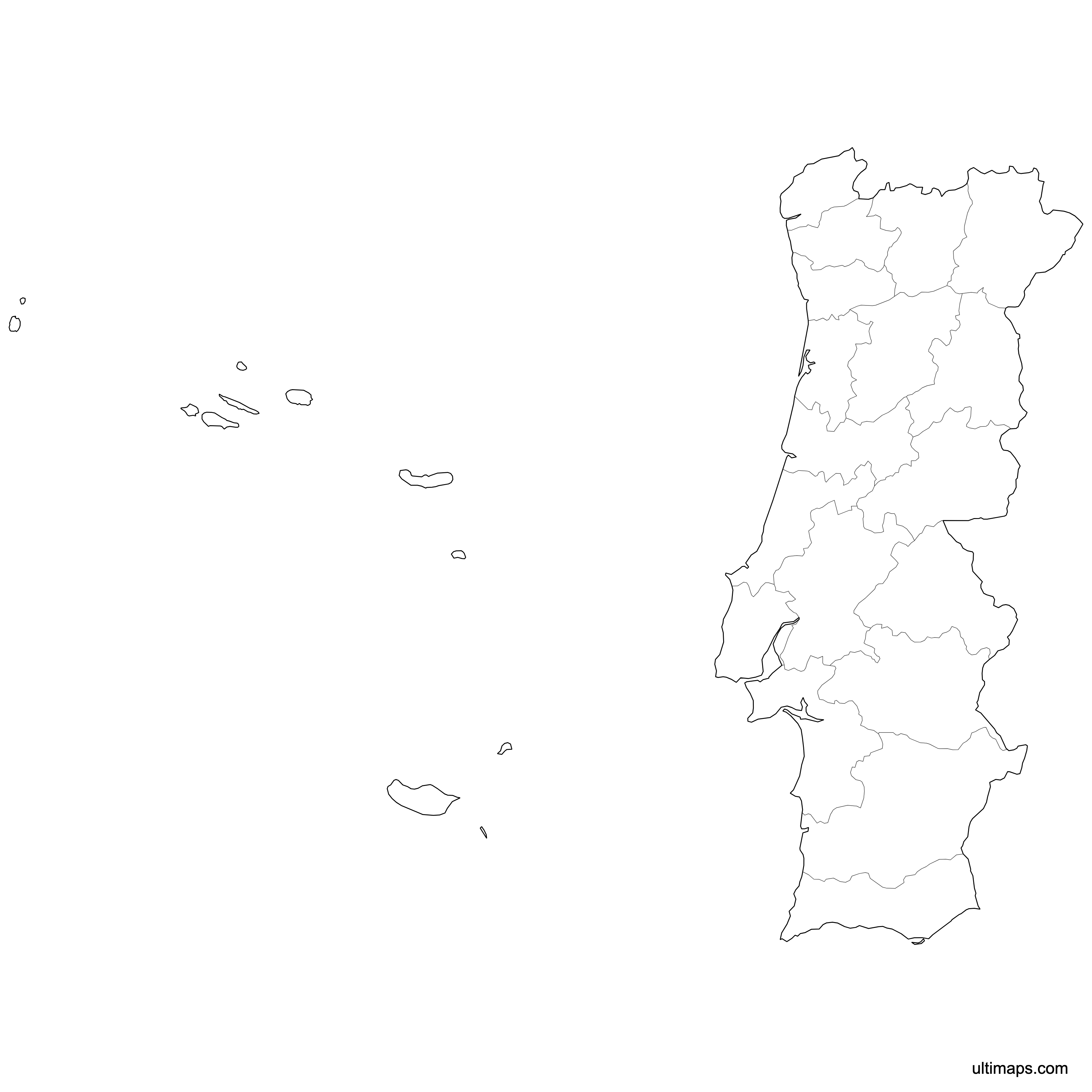 Download free blank Map of Portugal Districts in high-resolution PNG, PDF and SVG formats. Perfect for printing, coloring, presentations, and educational projects. Most of the maps available in different color schemes and with different features (such as labels, roads or rivers).
