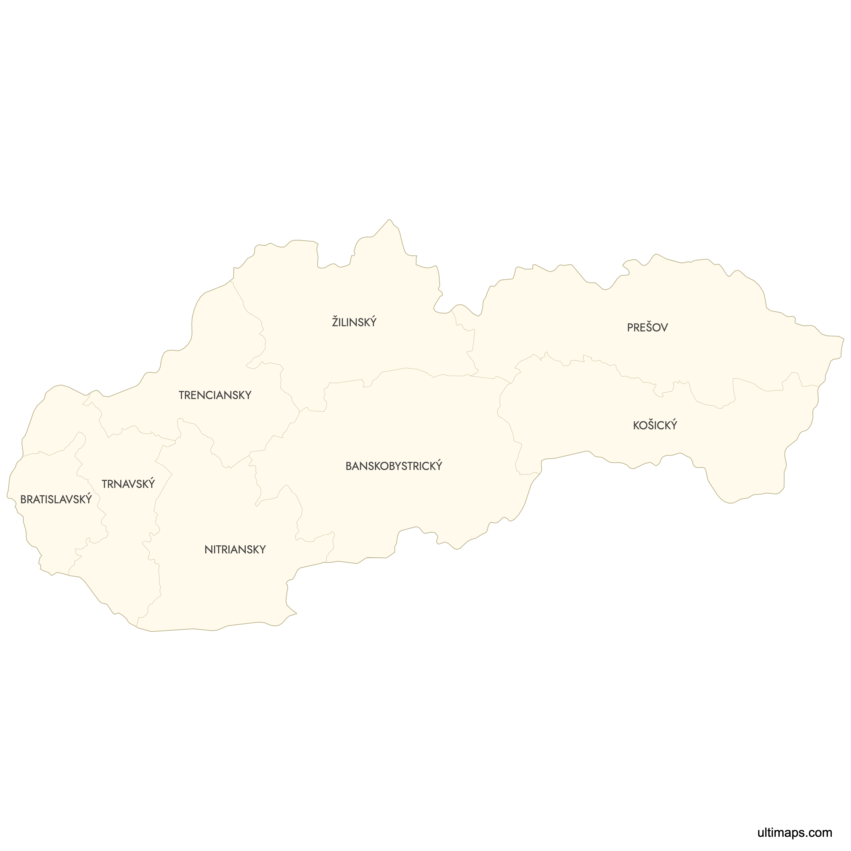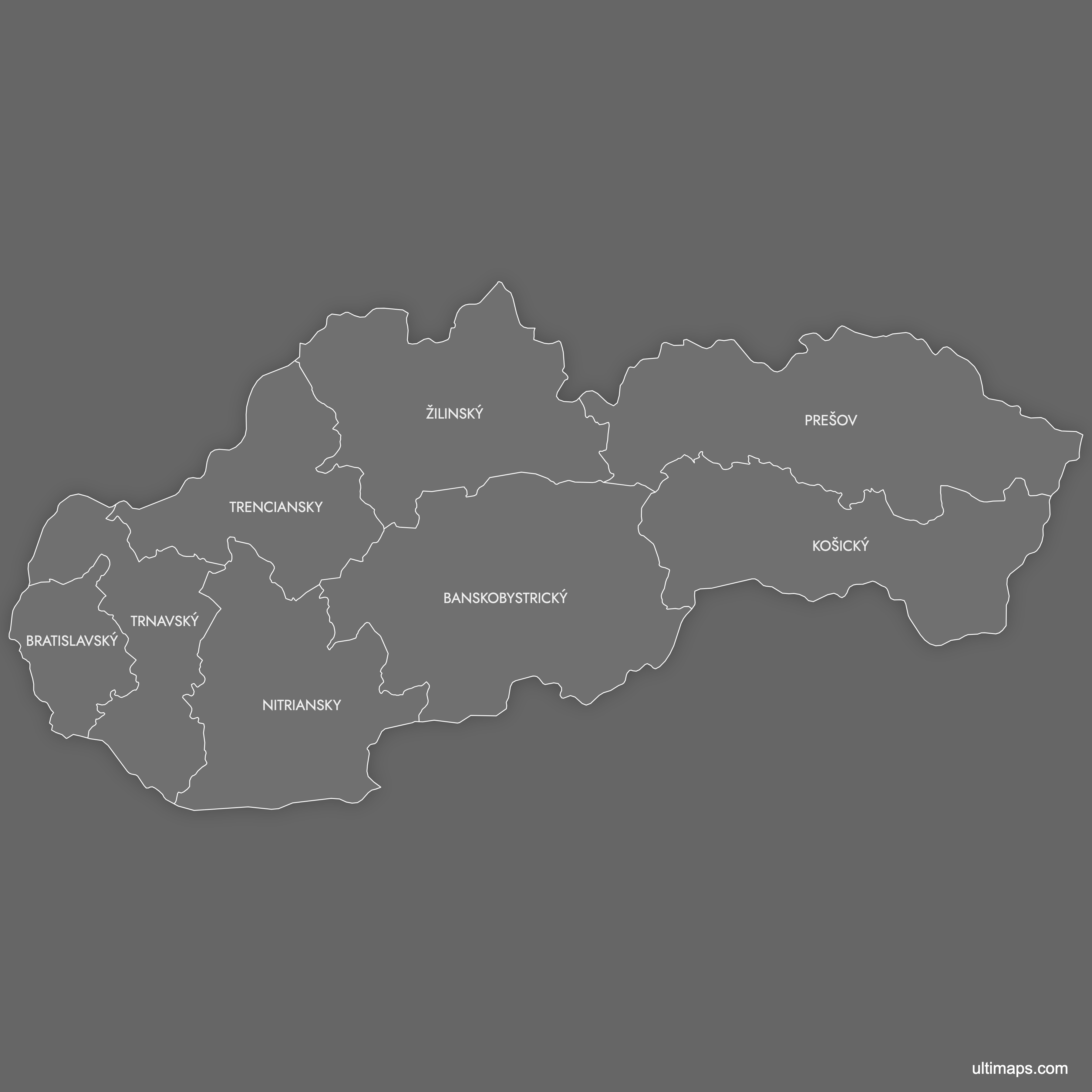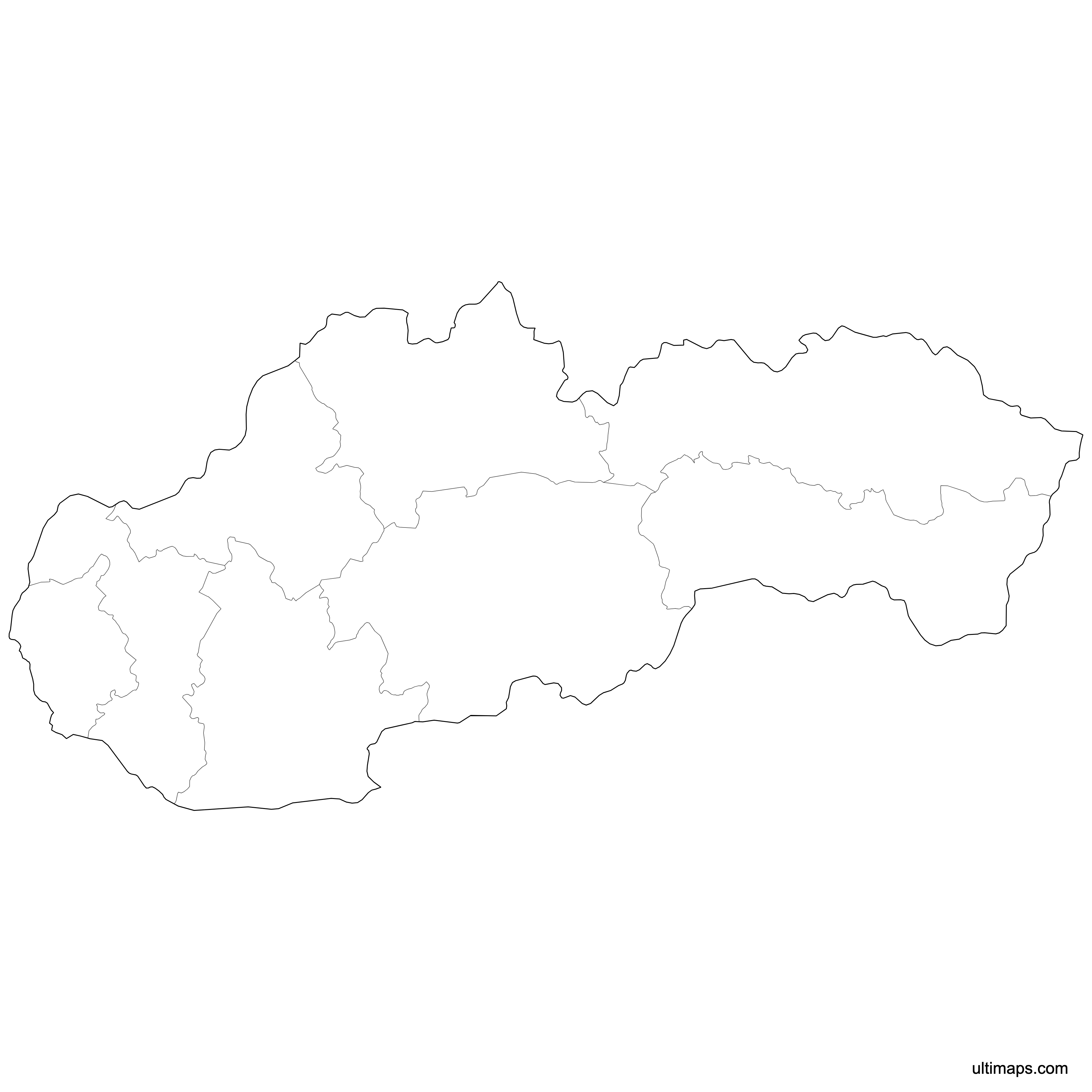 Download free blank Map of Slovak Regions in high-resolution PNG, PDF and SVG formats. Perfect for printing, coloring, presentations, and educational projects. Most of the maps available in different color schemes and with different features (such as labels, roads or rivers).