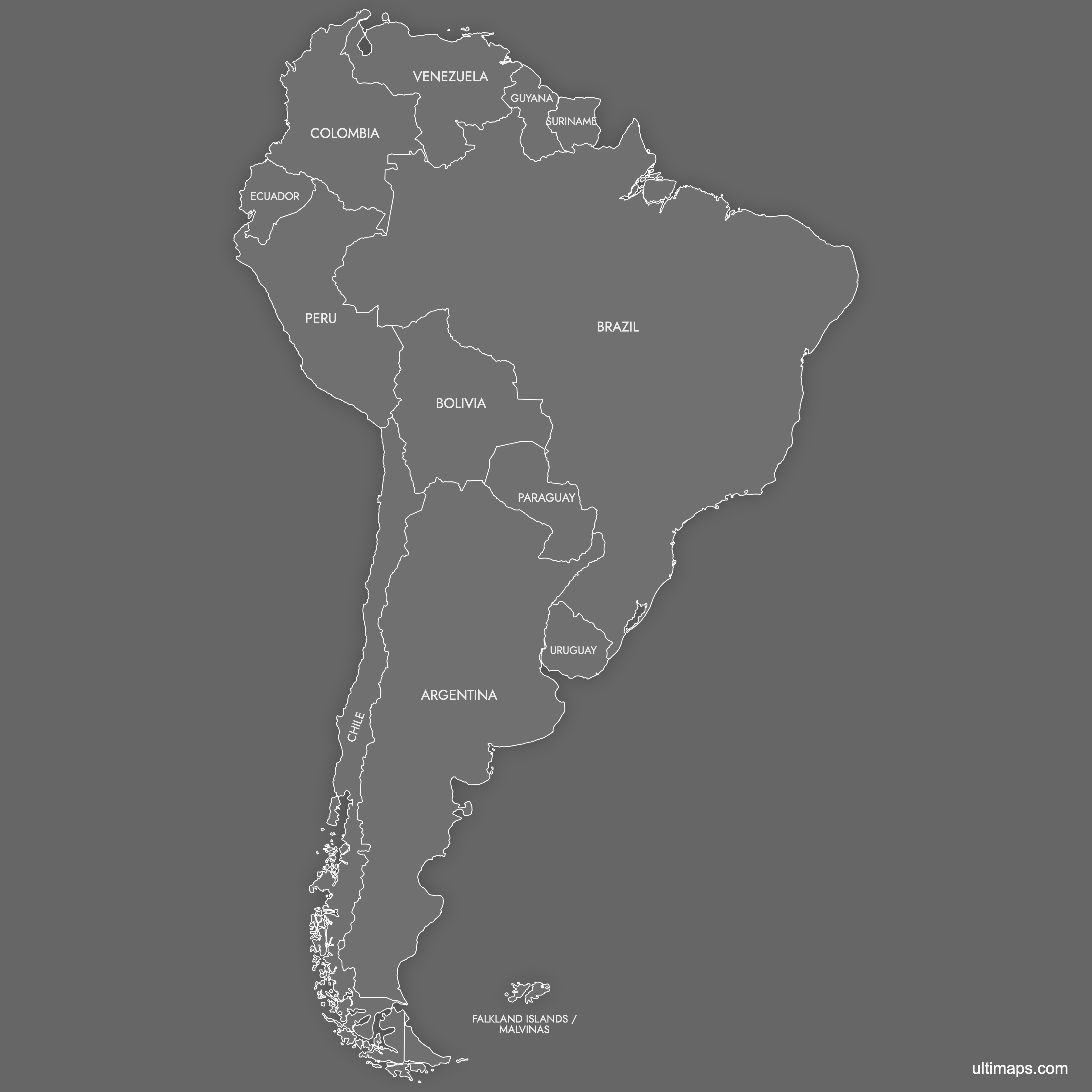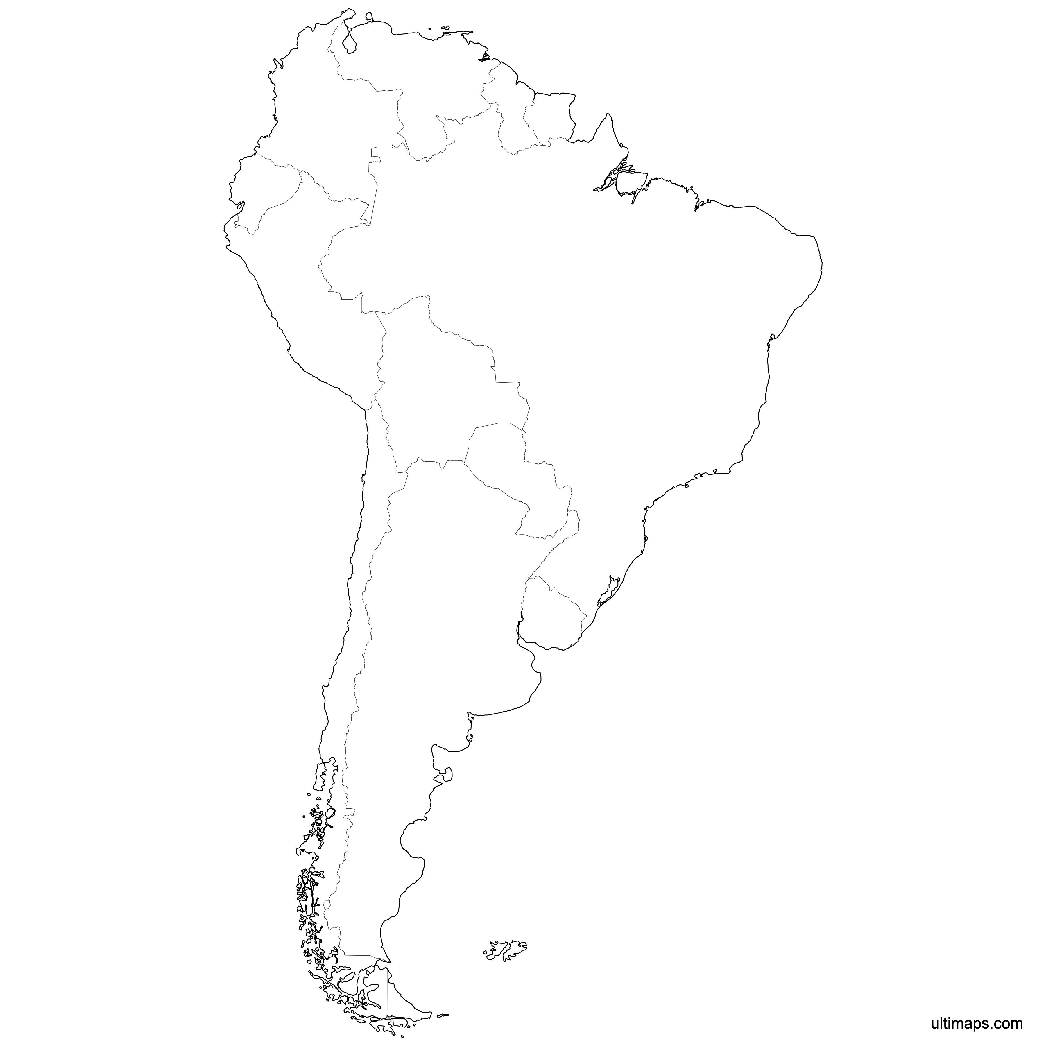 Download free blank Map of South America in high-resolution PNG, PDF and SVG formats. Perfect for printing, coloring, presentations, and educational projects. Most of the maps available in different color schemes and with different features (such as labels, roads or rivers).