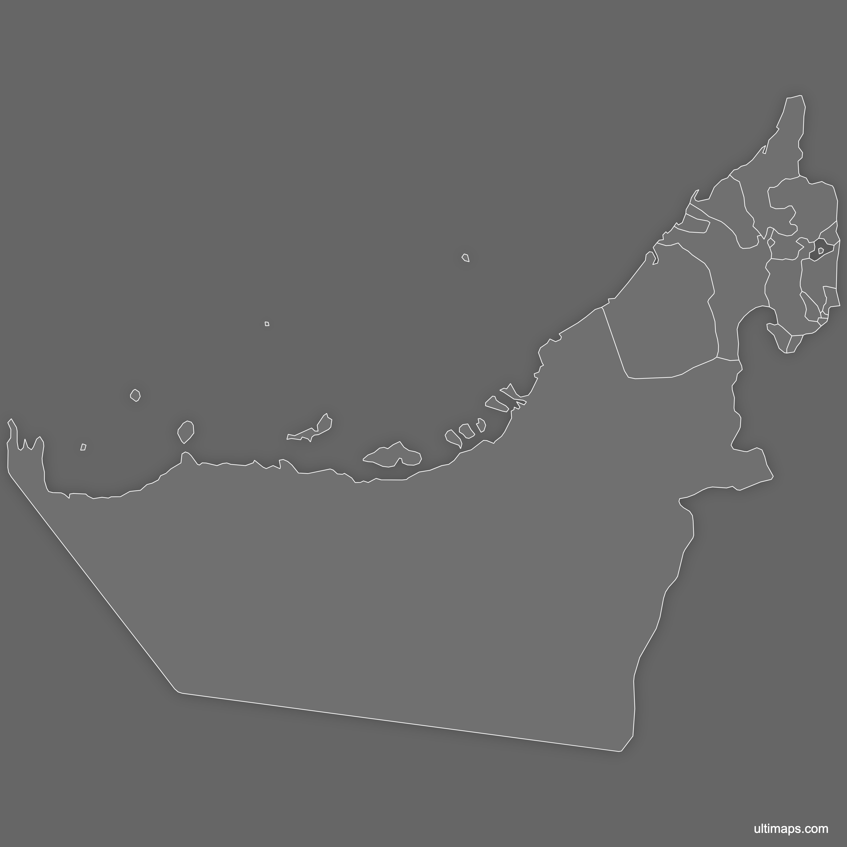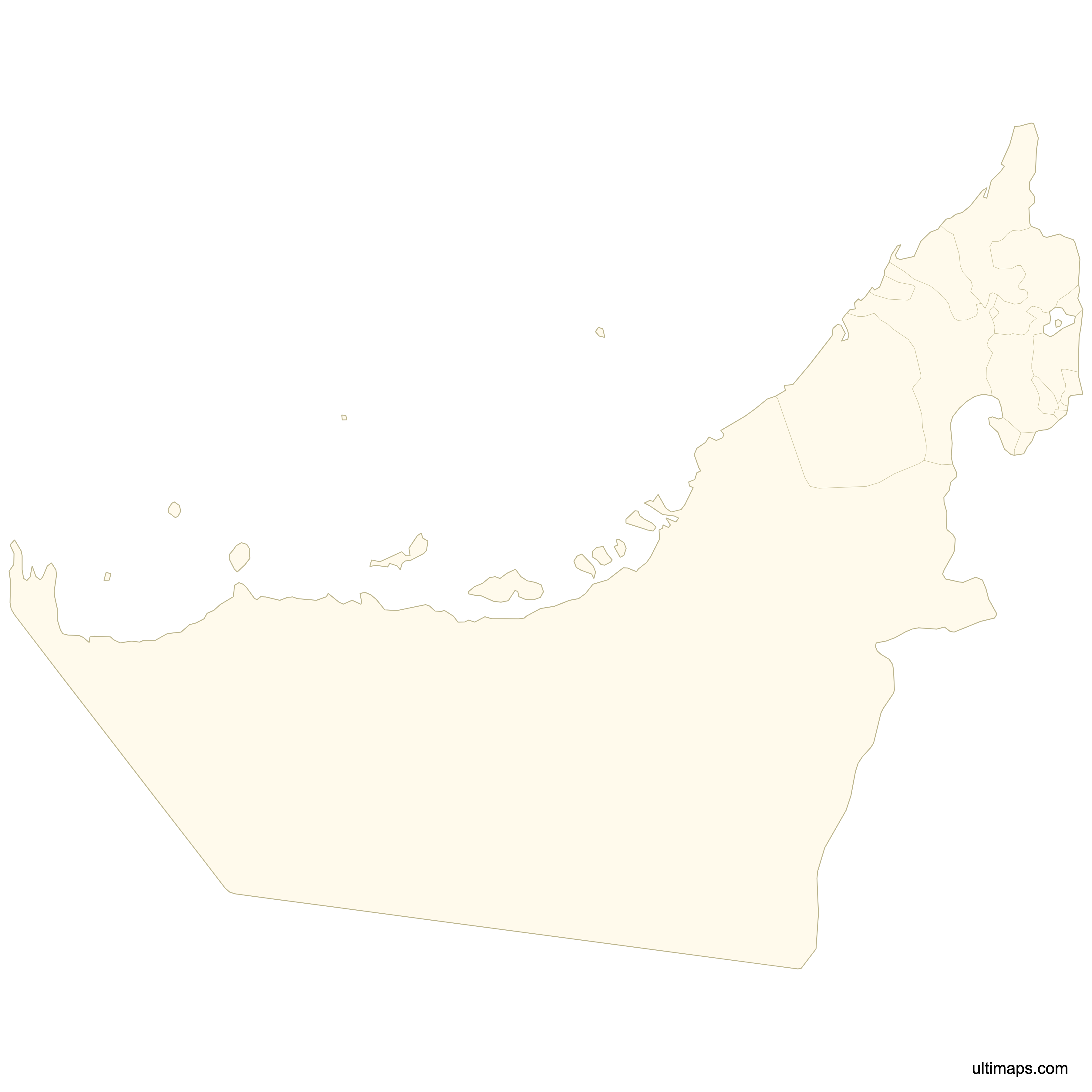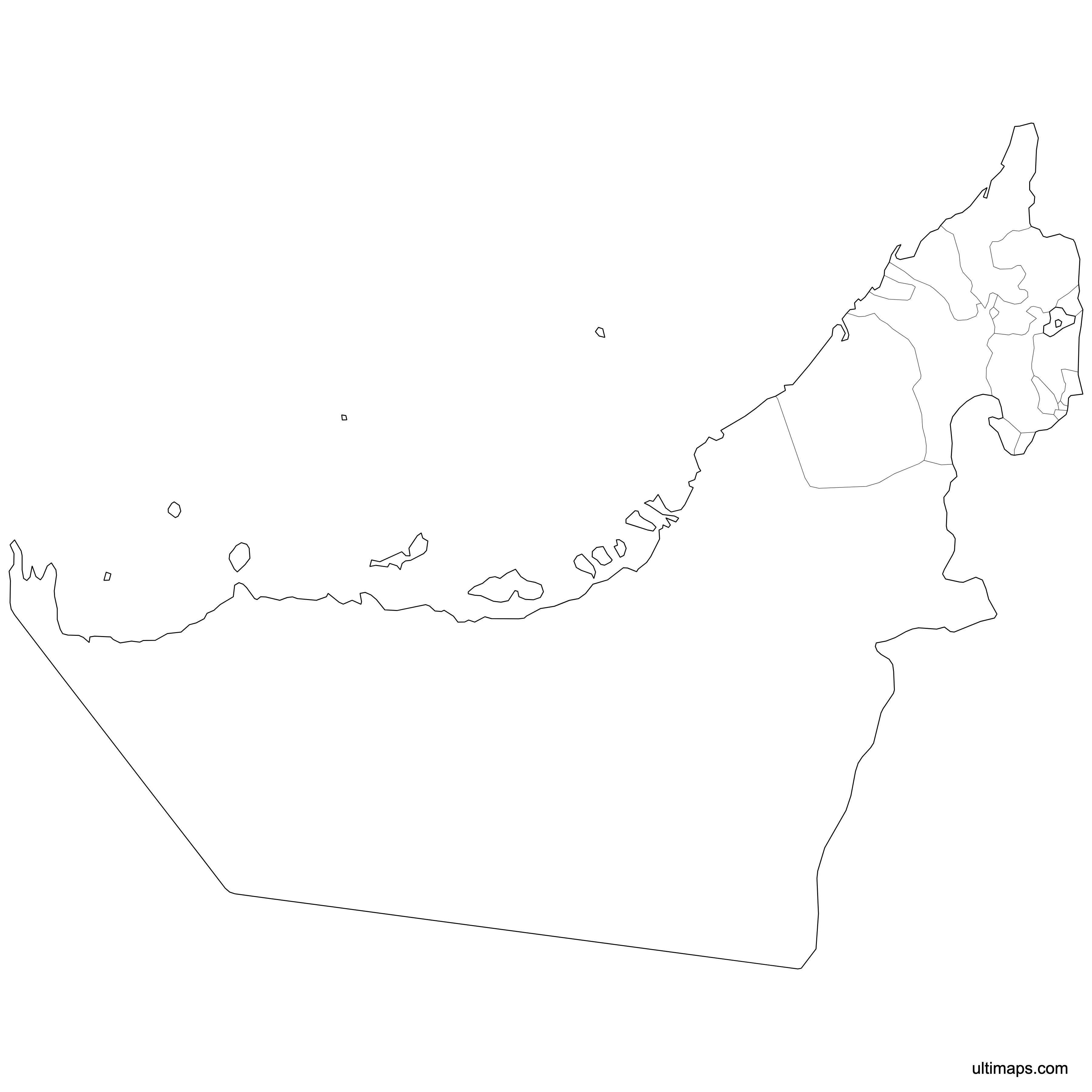 Download free blank Map of United Arab Emirates in high-resolution PNG, PDF and SVG formats. Perfect for printing, coloring, presentations, and educational projects. Most of the maps available in different color schemes and with different features (such as labels, roads or rivers).