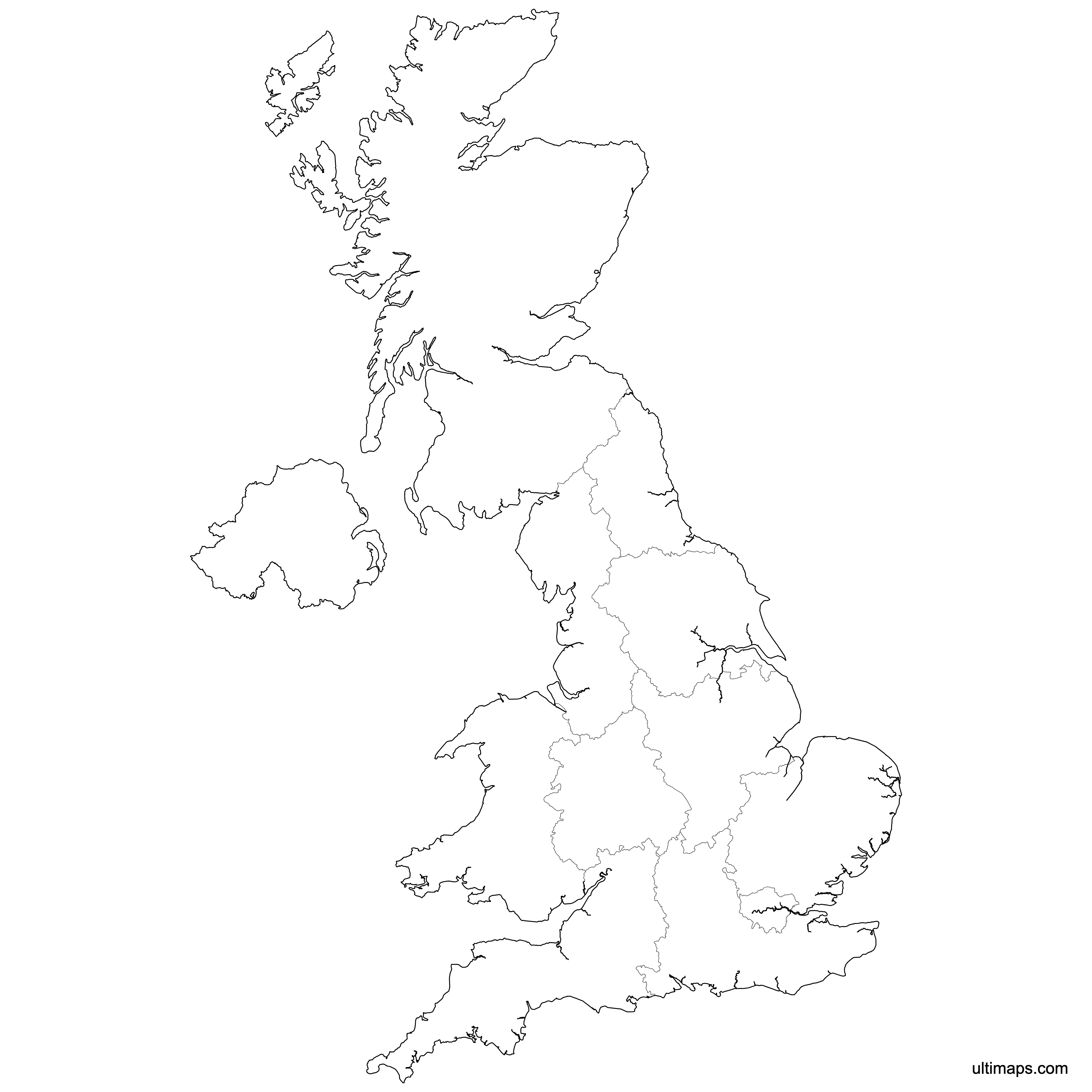 Download free blank Map of United Kingdom Regions in high-resolution PNG, PDF and SVG formats. Perfect for printing, coloring, presentations, and educational projects. Most of the maps available in different color schemes and with different features (such as labels, roads or rivers).