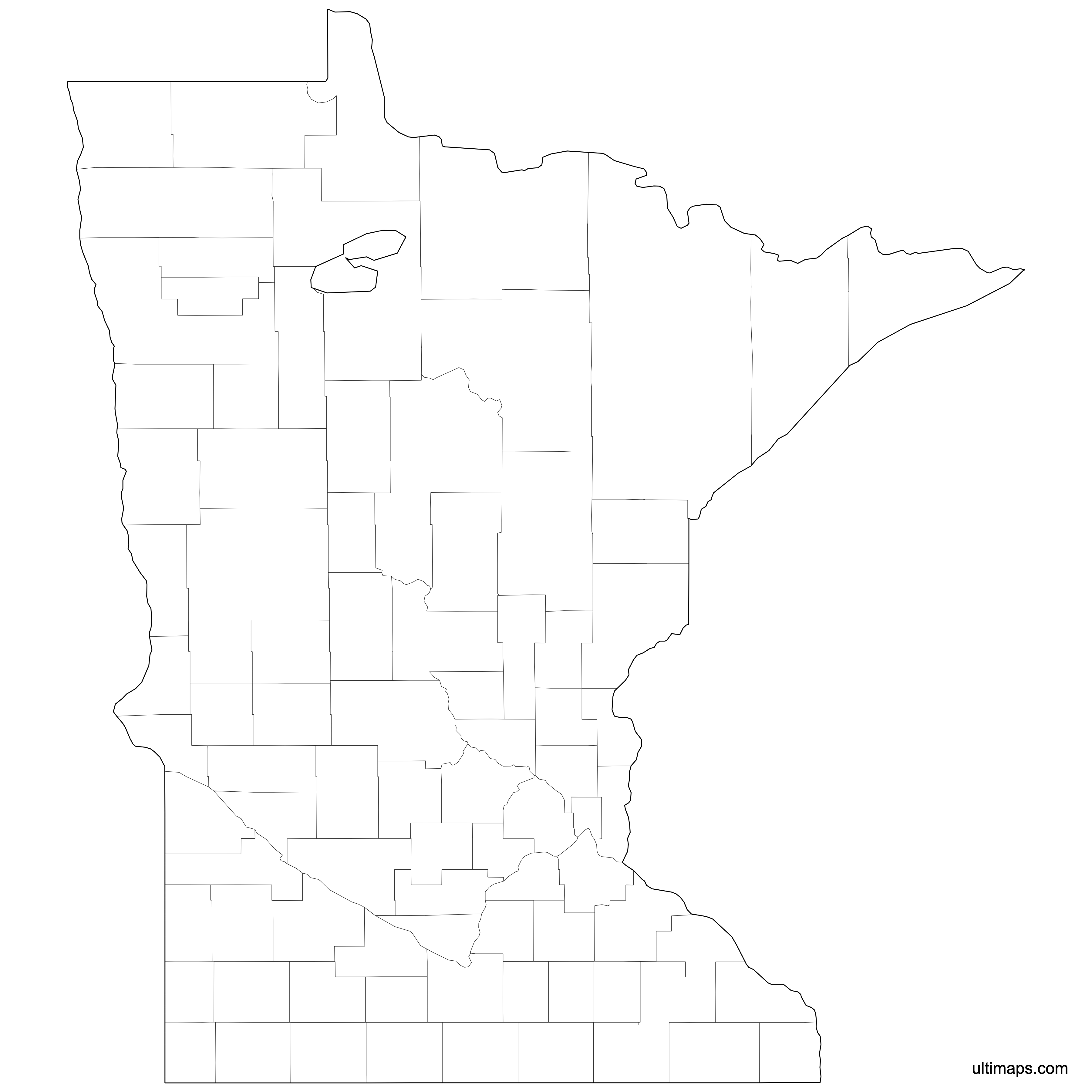 Download free blank Map of Minnesota Counties in high-resolution PNG, PDF and SVG formats. Perfect for printing, coloring, presentations, and educational projects. Most of the maps available in different color schemes and with different features (such as labels, roads or rivers).