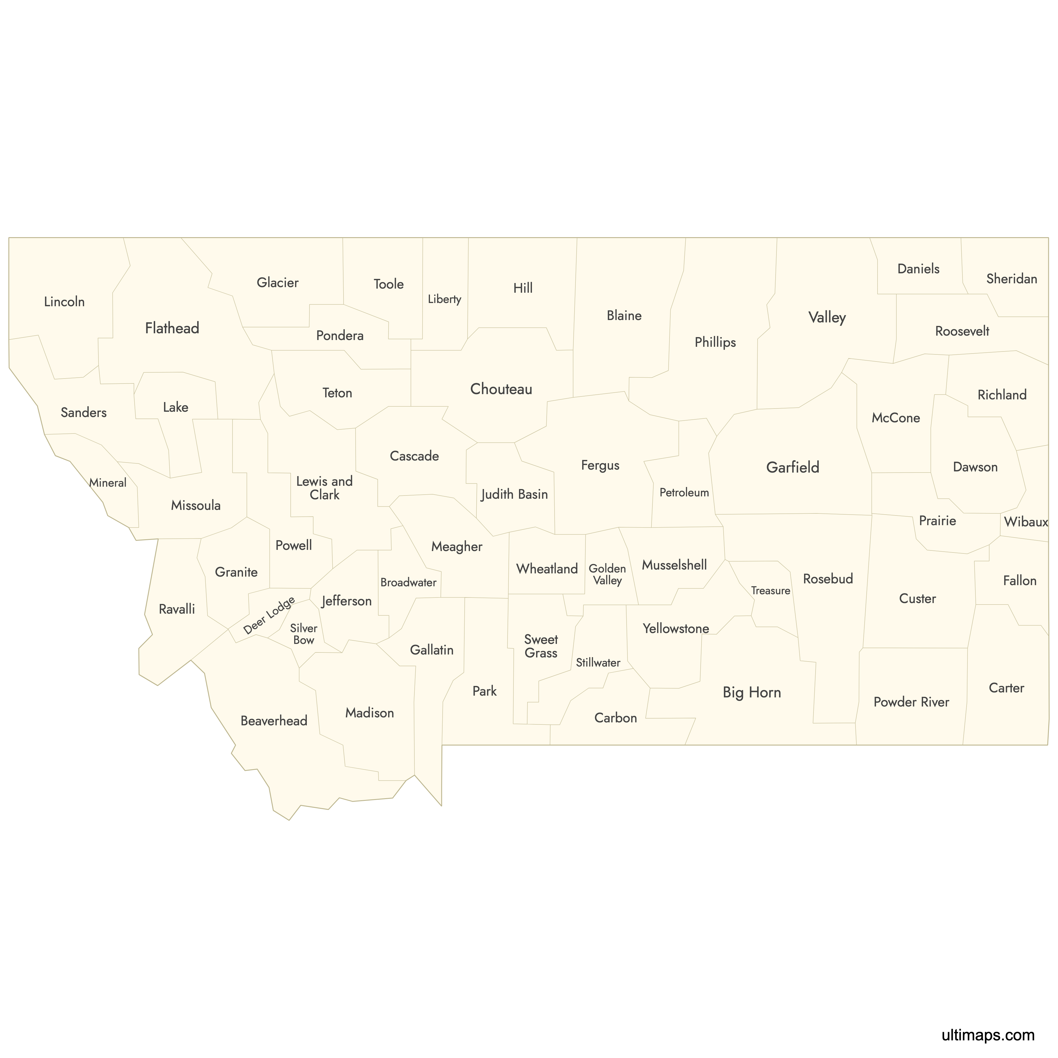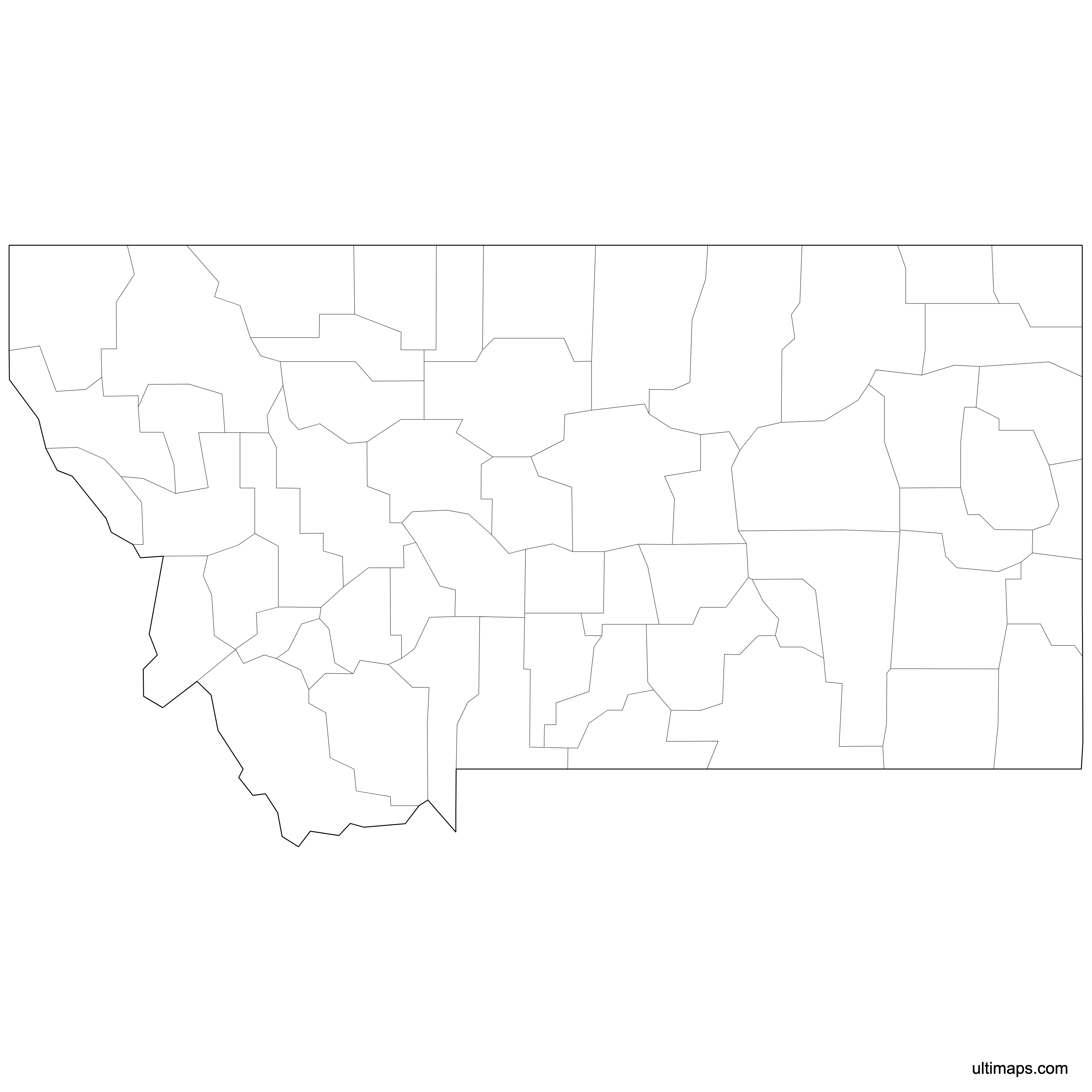 Download free blank Map of Montana Counties in high-resolution PNG, PDF and SVG formats. Perfect for printing, coloring, presentations, and educational projects. Most of the maps available in different color schemes and with different features (such as labels, roads or rivers).