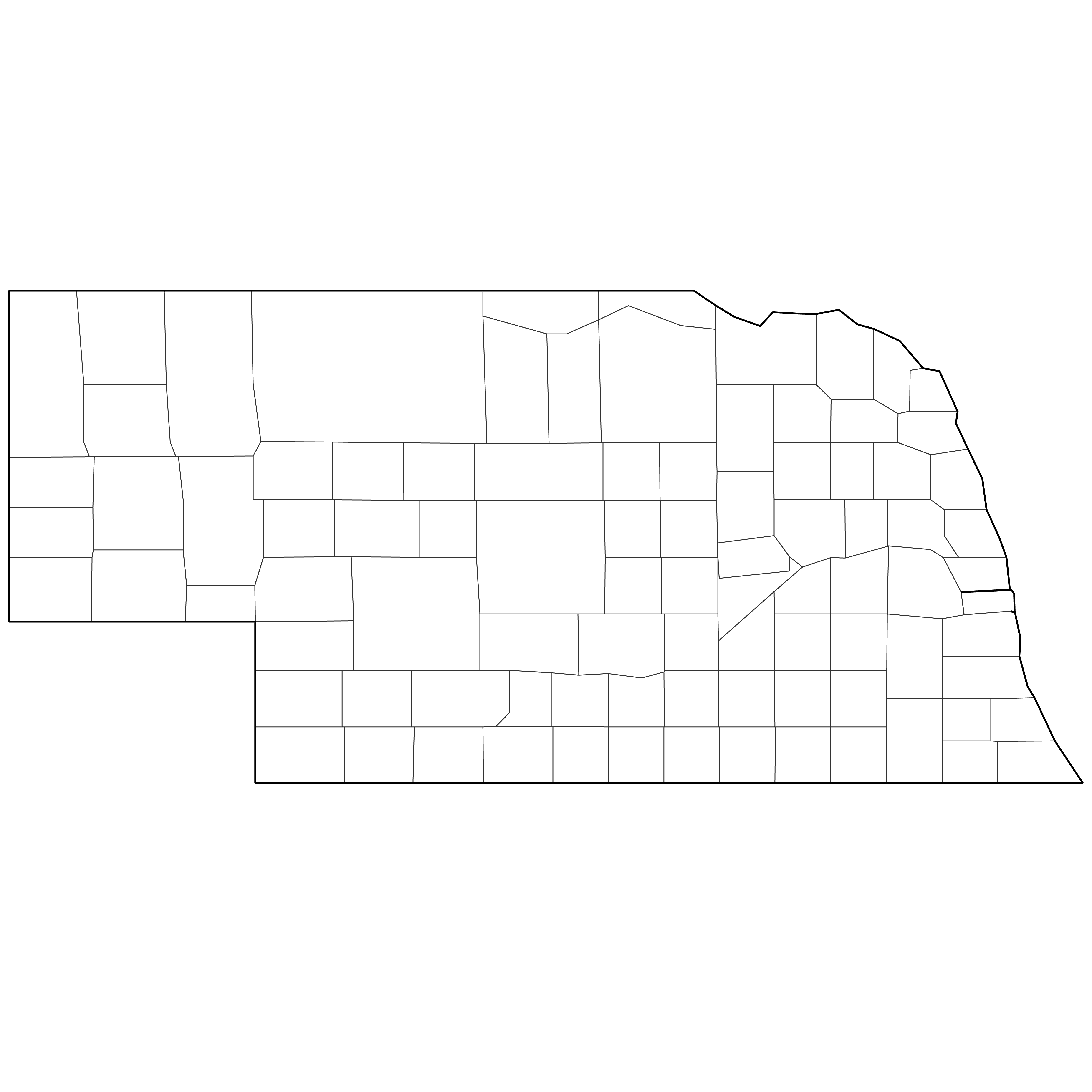 Below you can download free blank Map of Nebraska Counties in high resolution PNG or SVG formats suitable for printing or further editing. Most of the maps available in different color schemes and with different features (such as labels, roads or rivers). PNG maps are in 3600x3600px resolution and come with a transparent background.