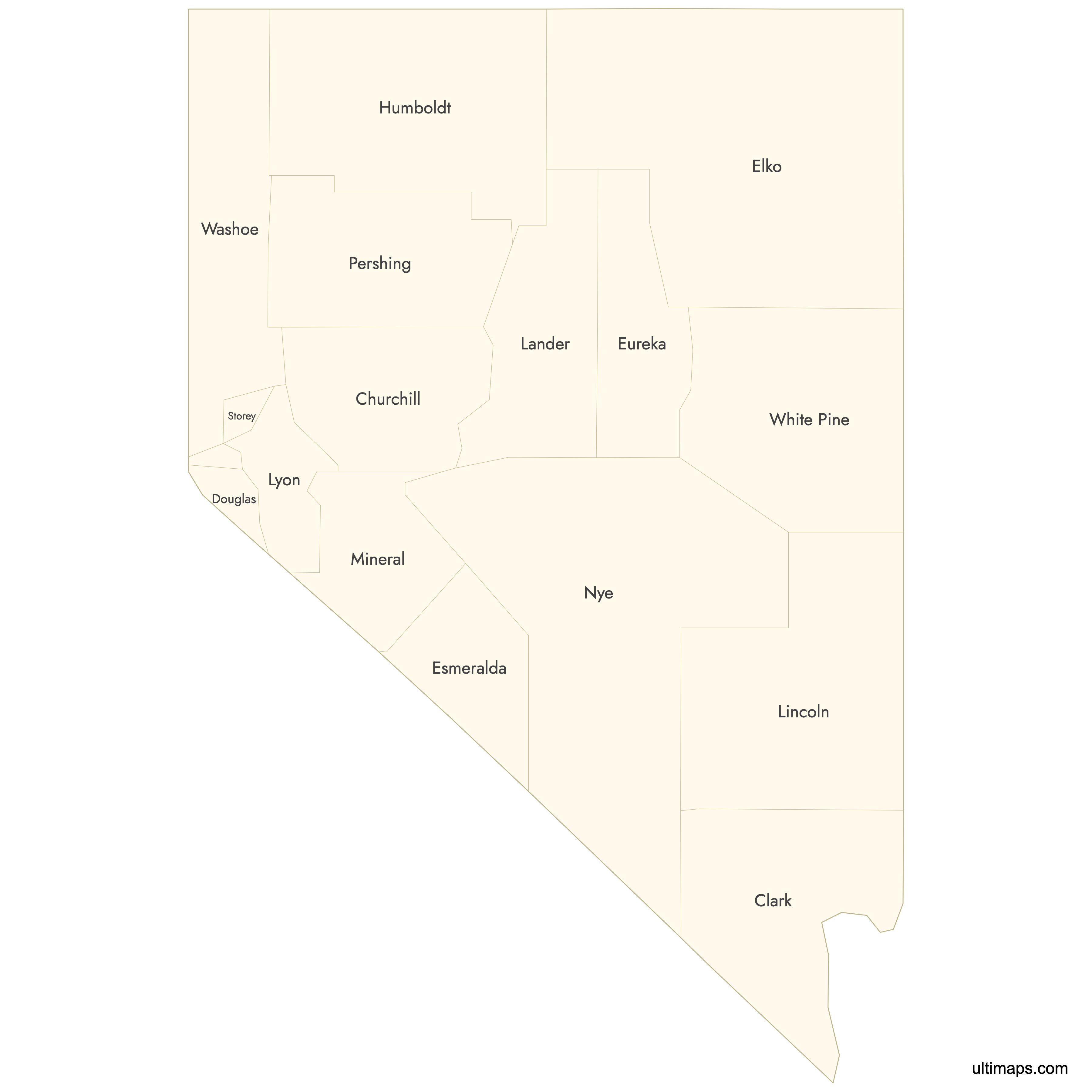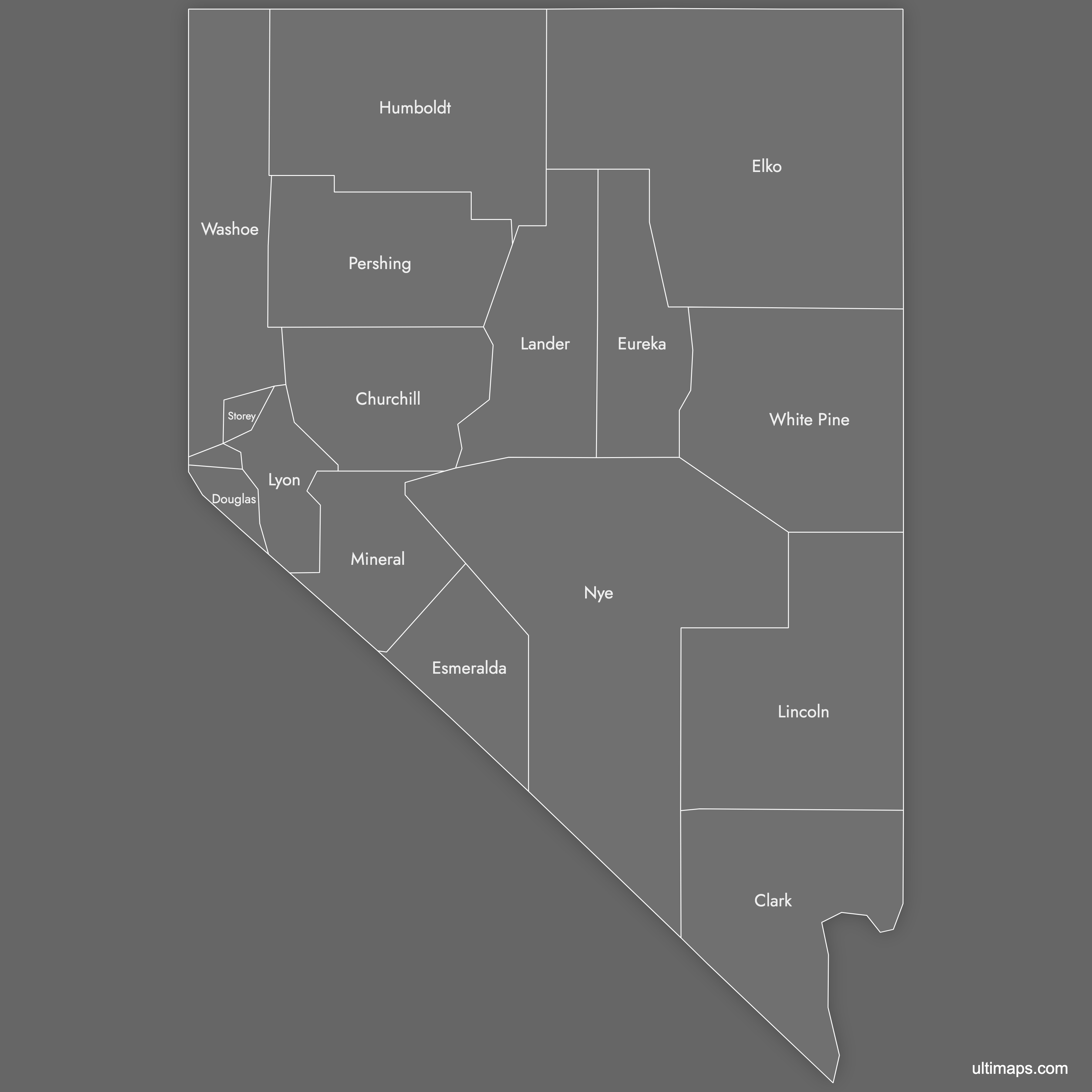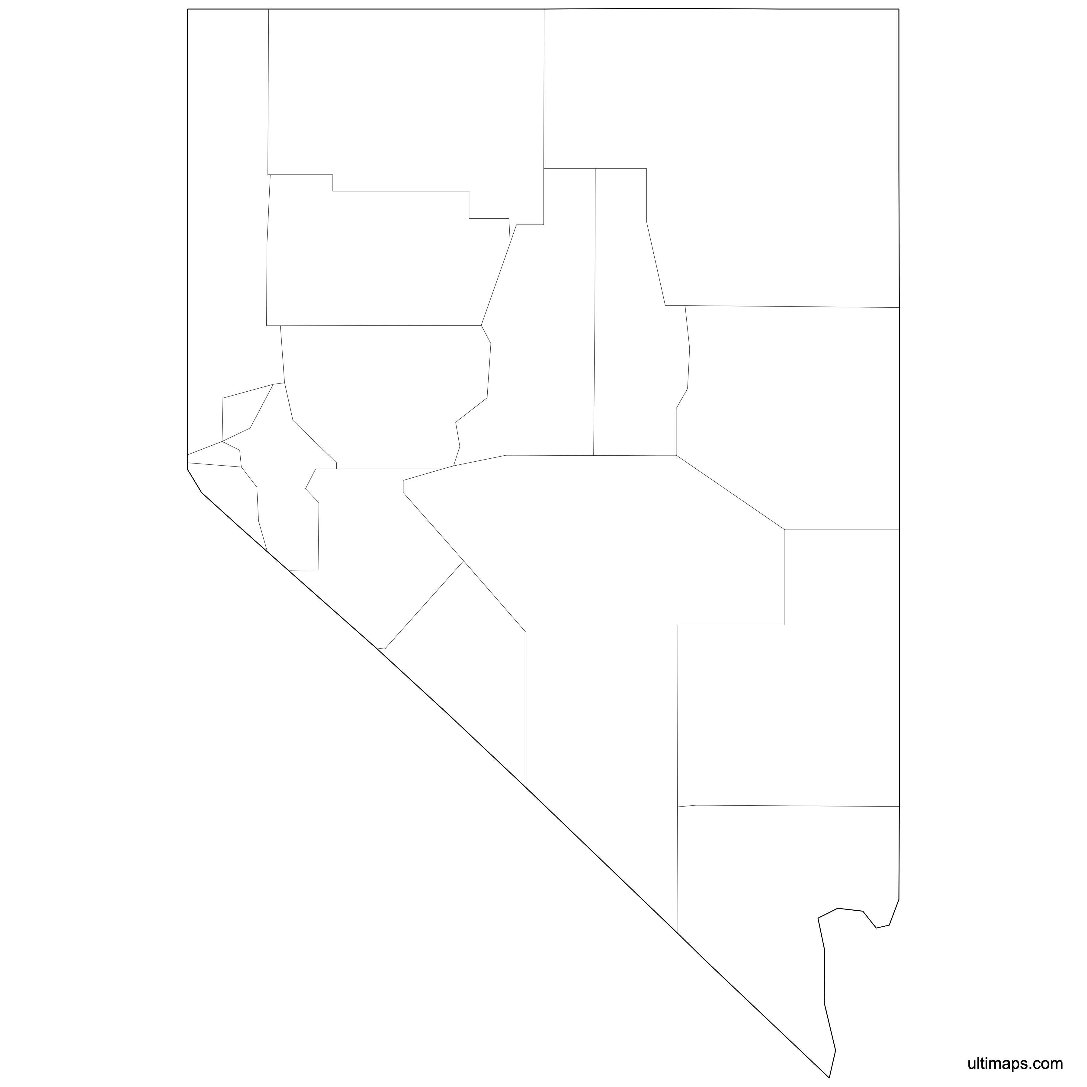 Download free blank Map of Nevada Counties in high-resolution PNG, PDF and SVG formats. Perfect for printing, coloring, presentations, and educational projects. Most of the maps available in different color schemes and with different features (such as labels, roads or rivers).