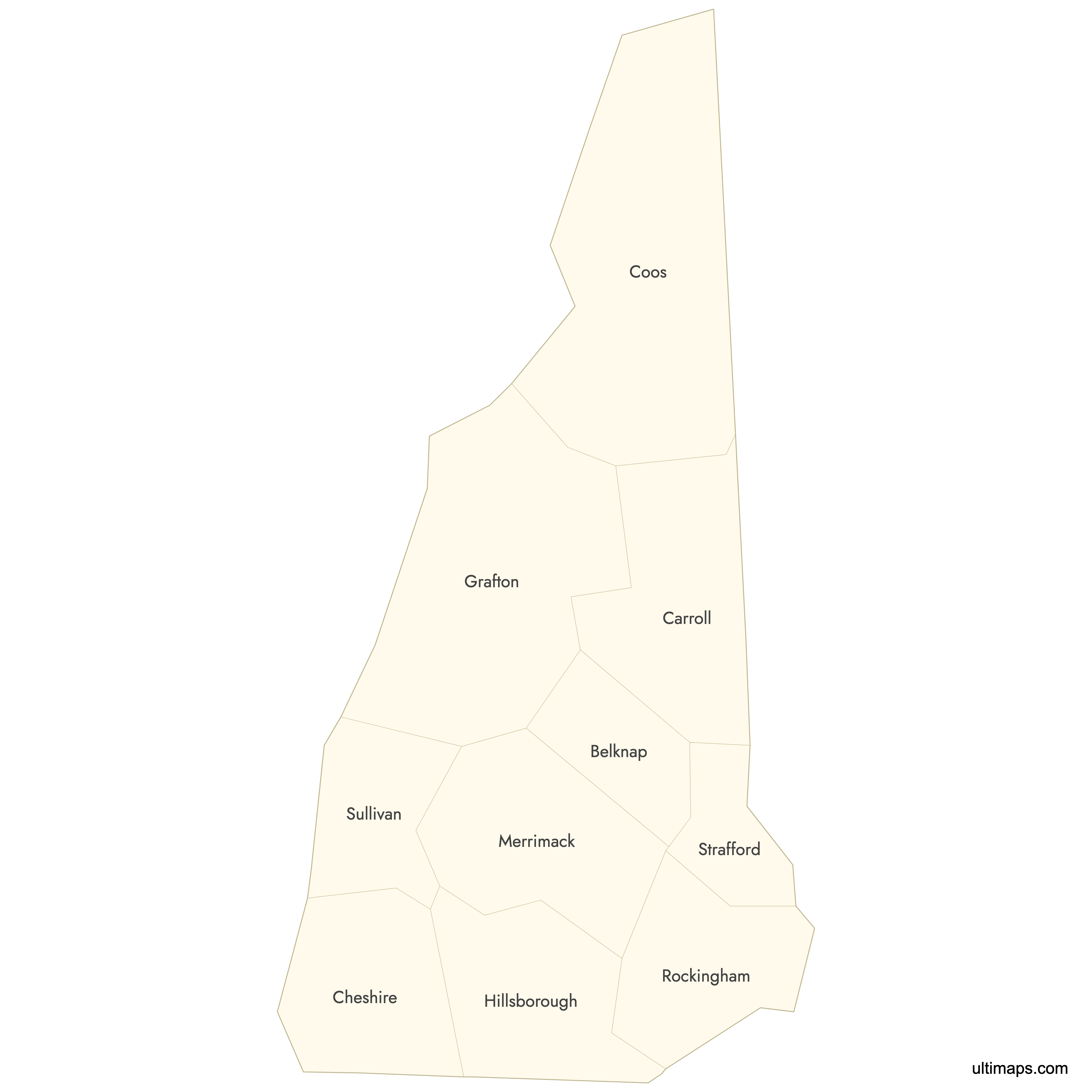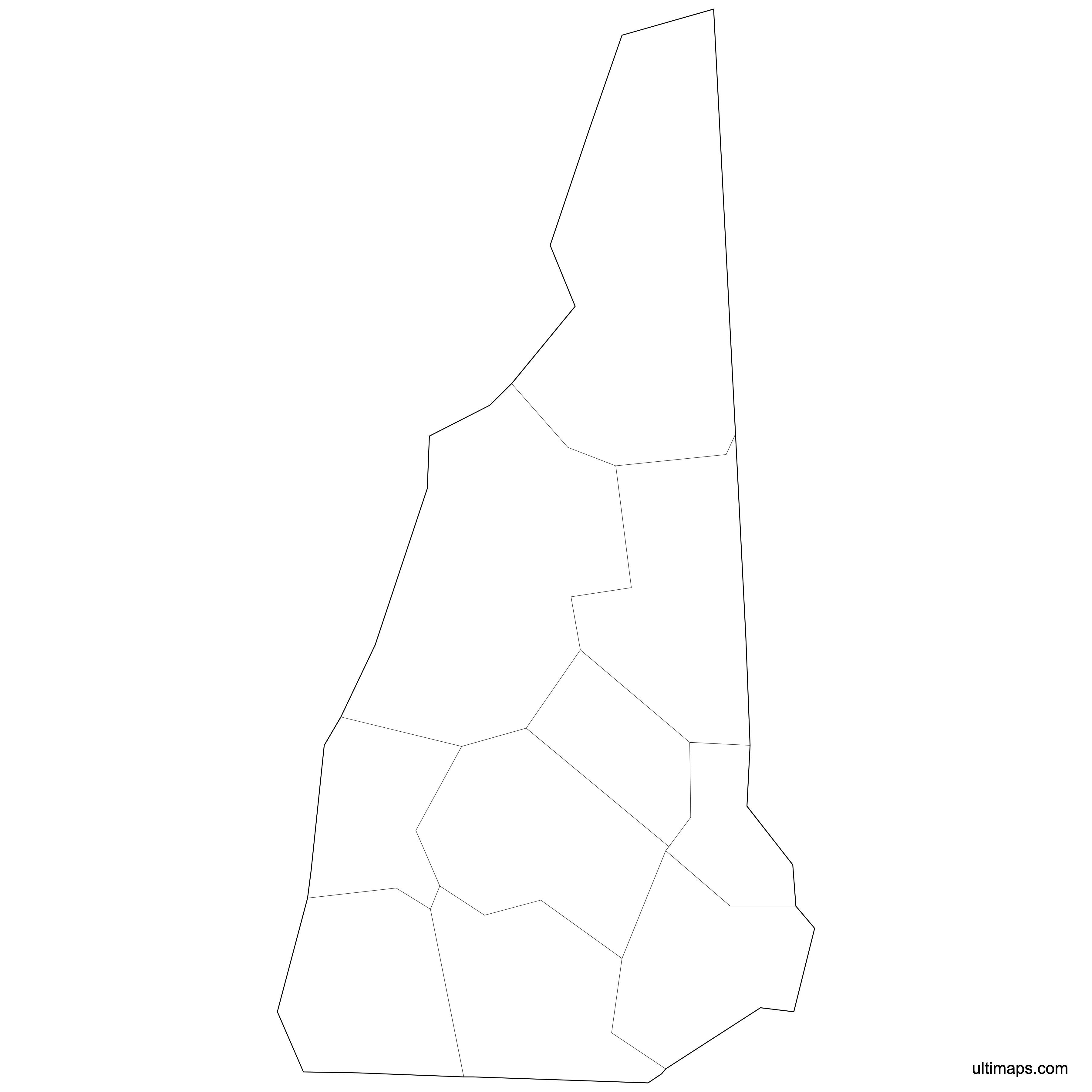 Download free blank Map of New Hampshire Counties in high-resolution PNG, PDF and SVG formats. Perfect for printing, coloring, presentations, and educational projects. Most of the maps available in different color schemes and with different features (such as labels, roads or rivers).
