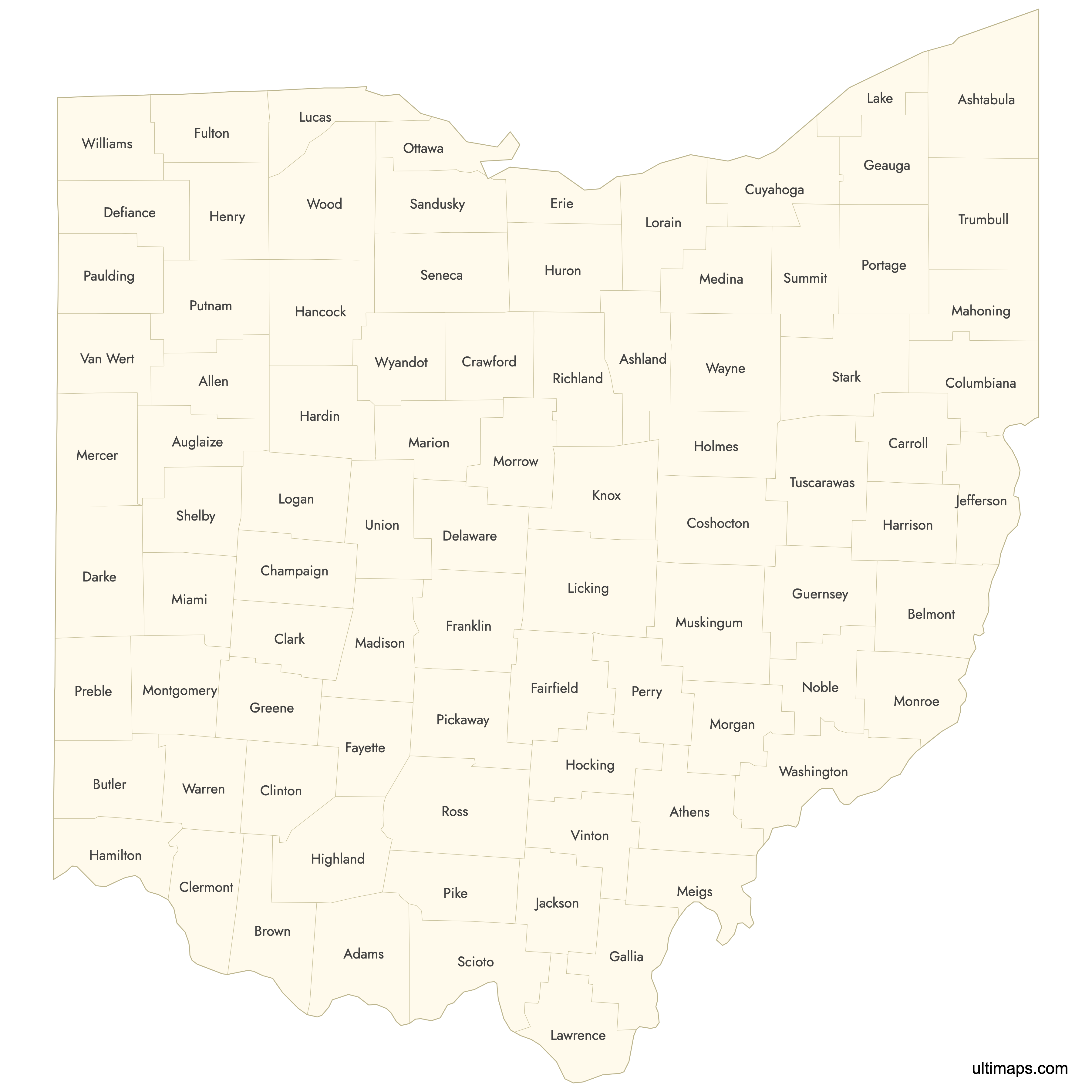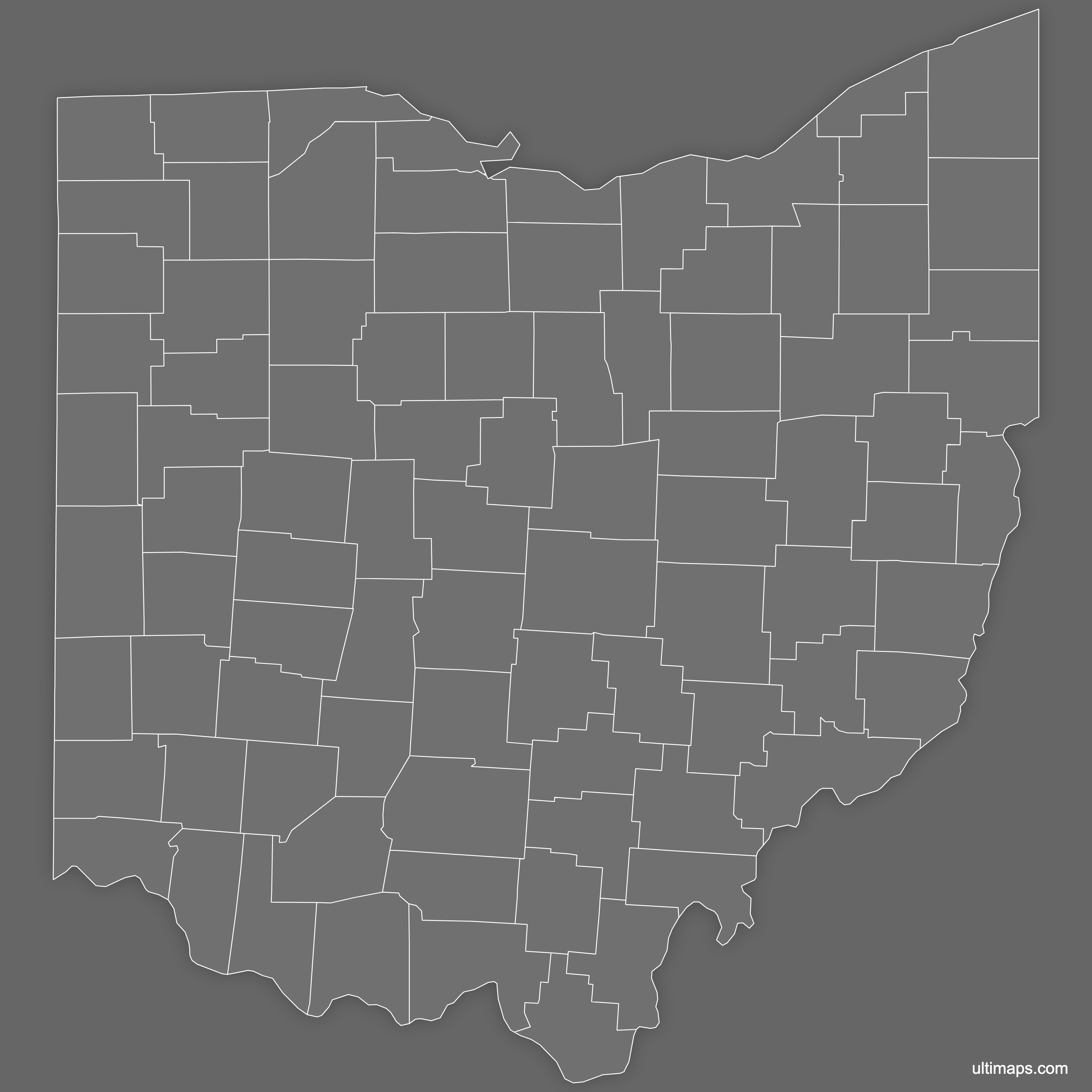 Download free blank Map of Ohio Counties in high-resolution PNG, PDF and SVG formats. Perfect for printing, coloring, presentations, and educational projects. Most of the maps available in different color schemes and with different features (such as labels, roads or rivers).