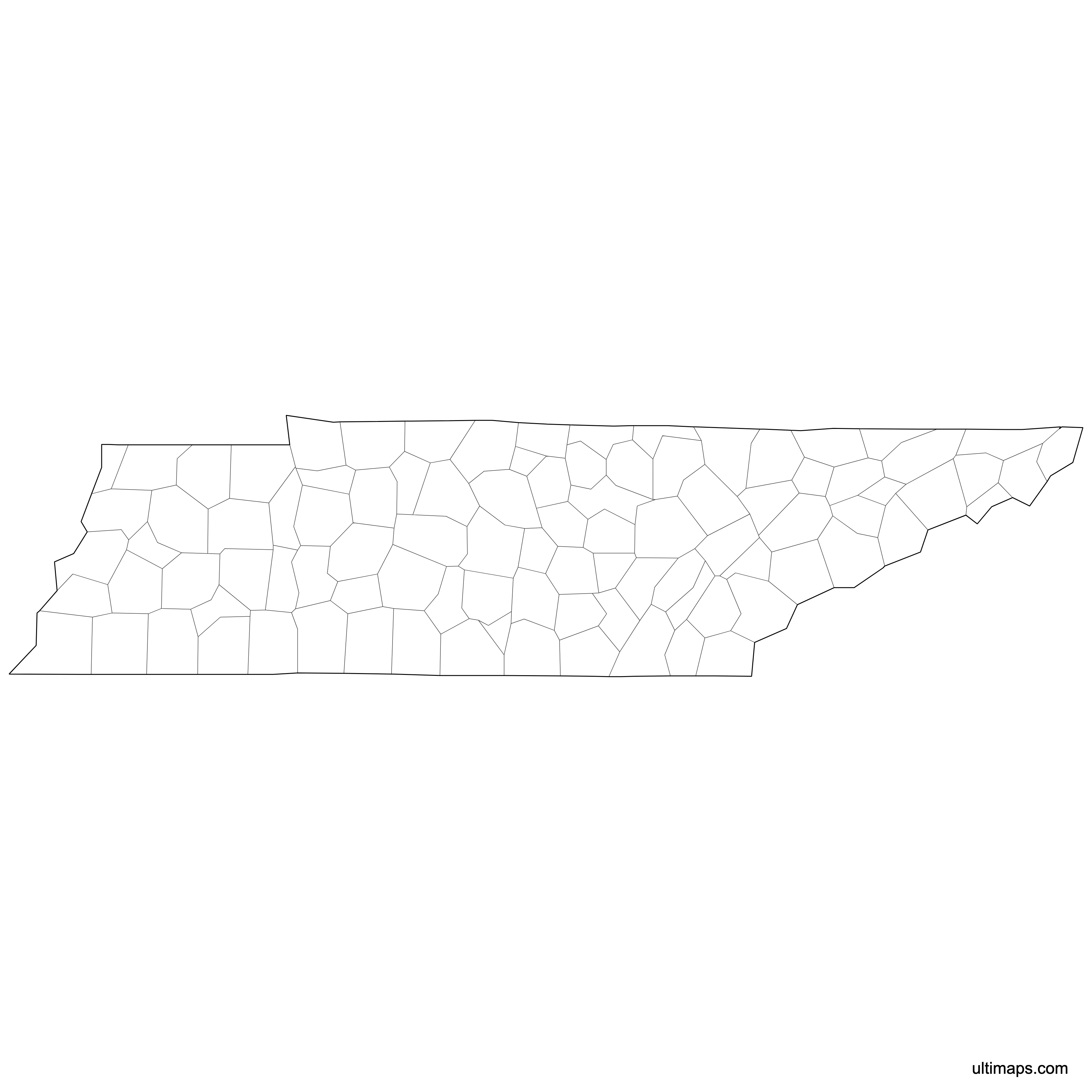 Download free blank Map of Tennessee Counties in high-resolution PNG, PDF and SVG formats. Perfect for printing, coloring, presentations, and educational projects. Most of the maps available in different color schemes and with different features (such as labels, roads or rivers).