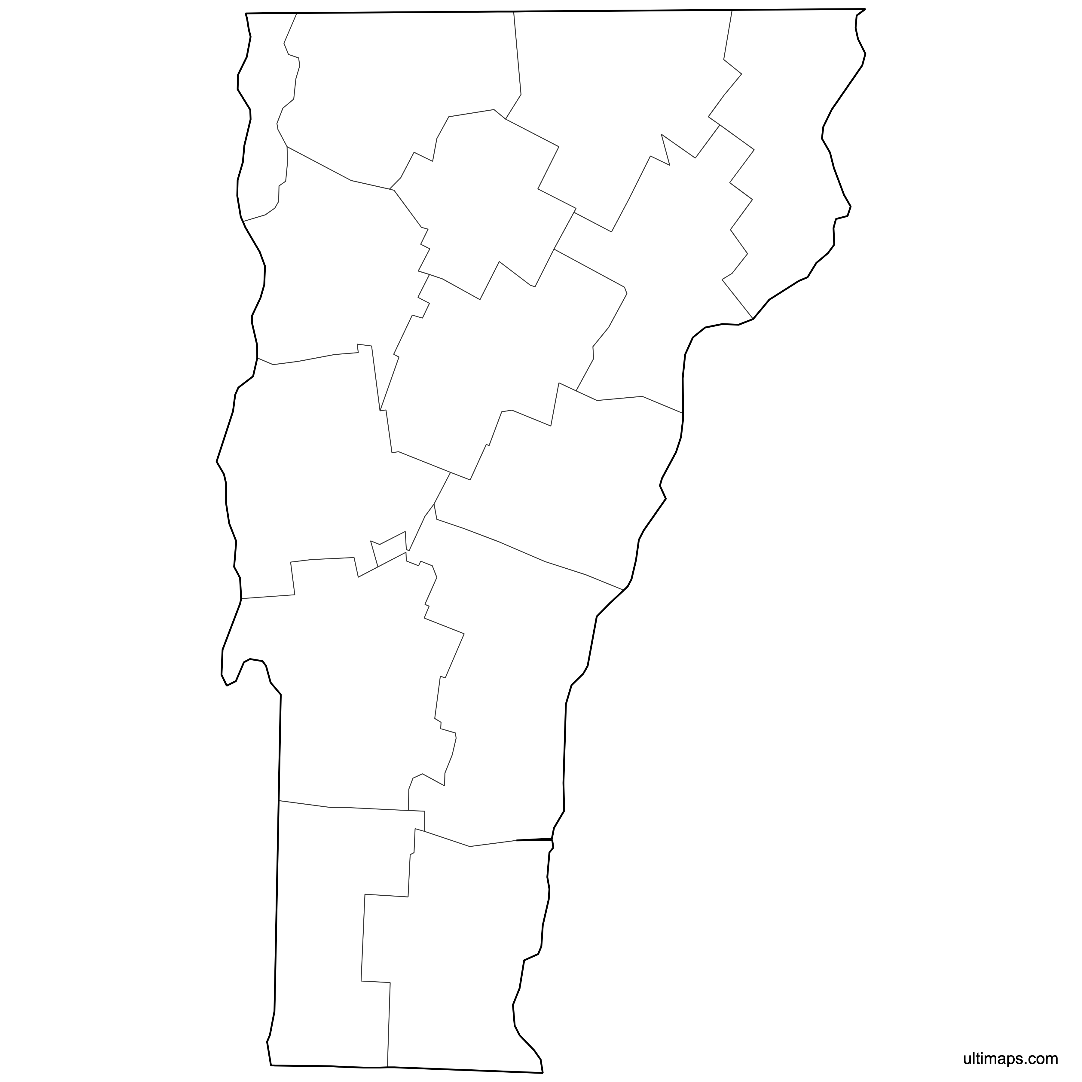 Below you can download free blank Map of Vermont Counties in high resolution PNG or SVG formats suitable for printing or further editing. Most of the maps available in different color schemes and with different features (such as labels, roads or rivers). PNG maps are in 3600x3600px resolution and come with a transparent background.
