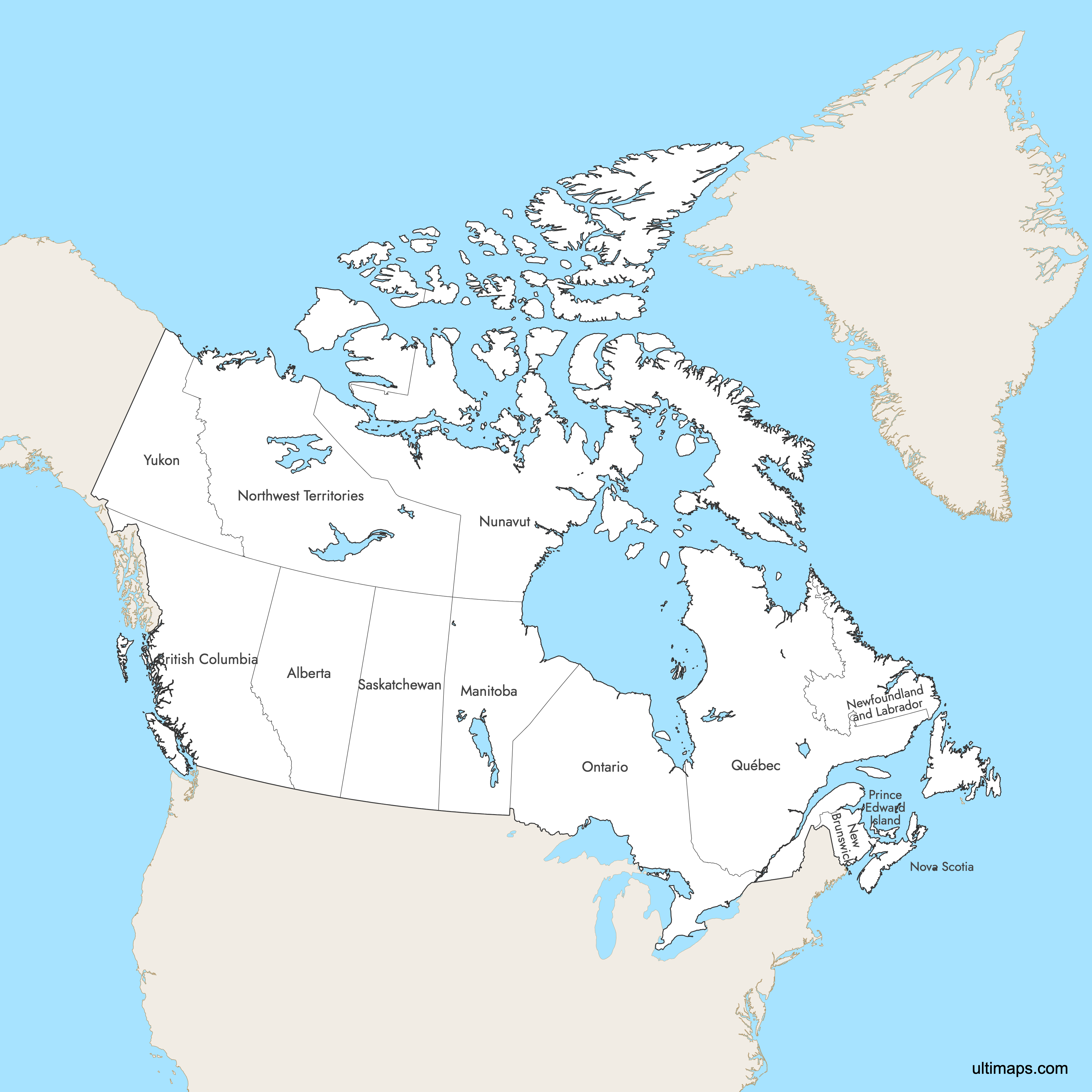 You can download free blank Map of Canada Provinces and other maps in high resolution PNG, SVG and PDF formats from the blank maps section of the site: Download Blank Map of Canada Provinces