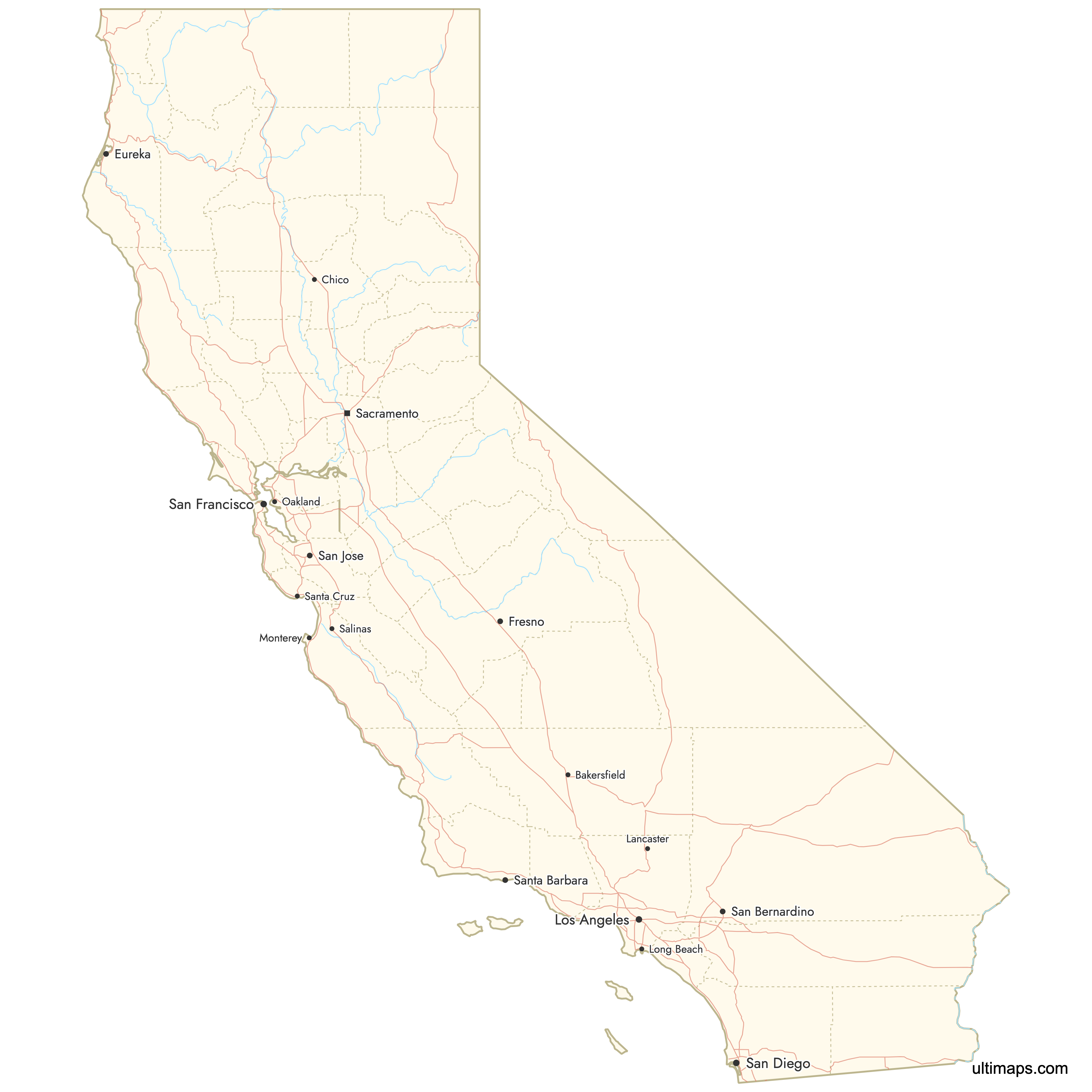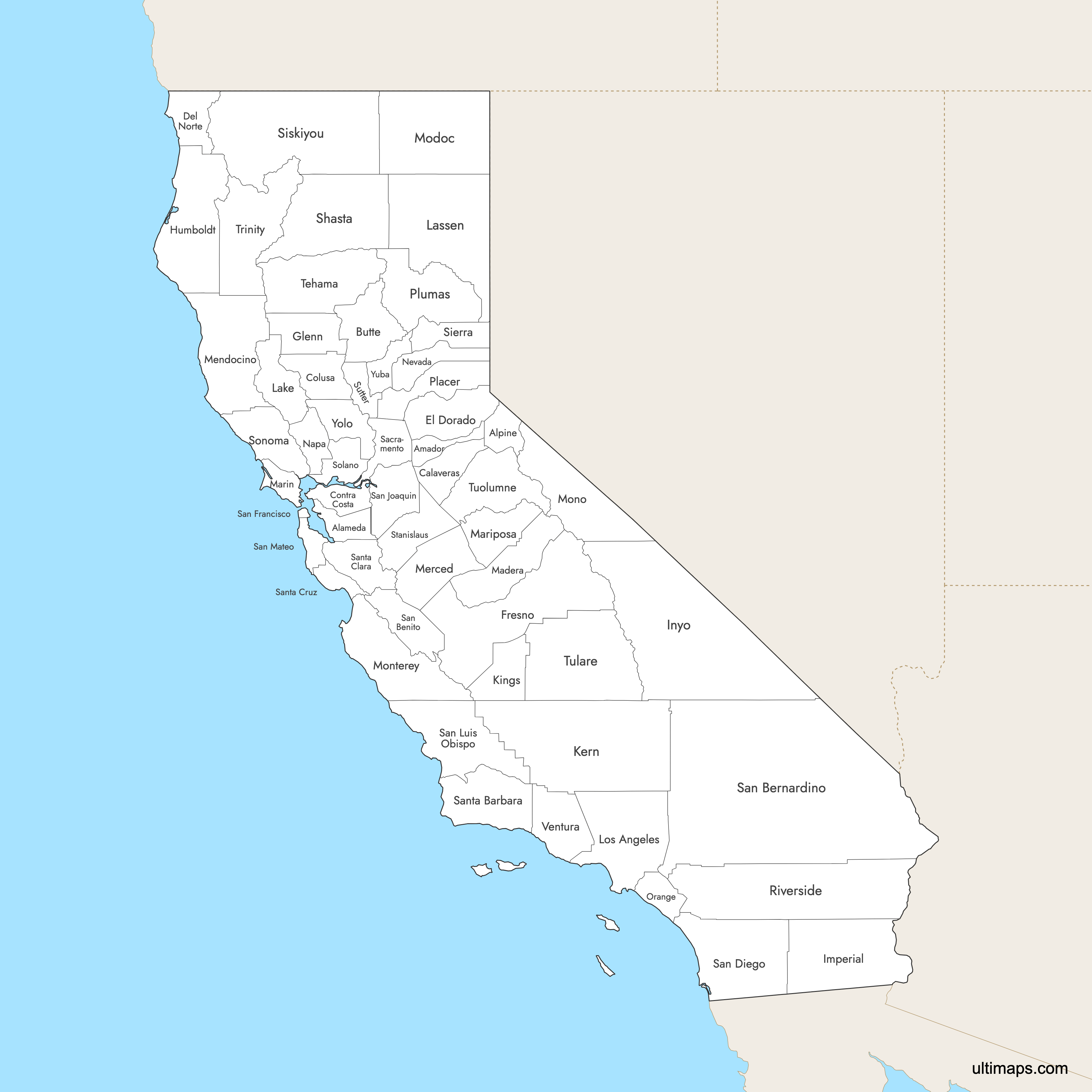 You can download free blank Map of California Counties and other maps in high resolution PNG, SVG and PDF formats from the blank maps section of the site: Download Blank Map of California Counties