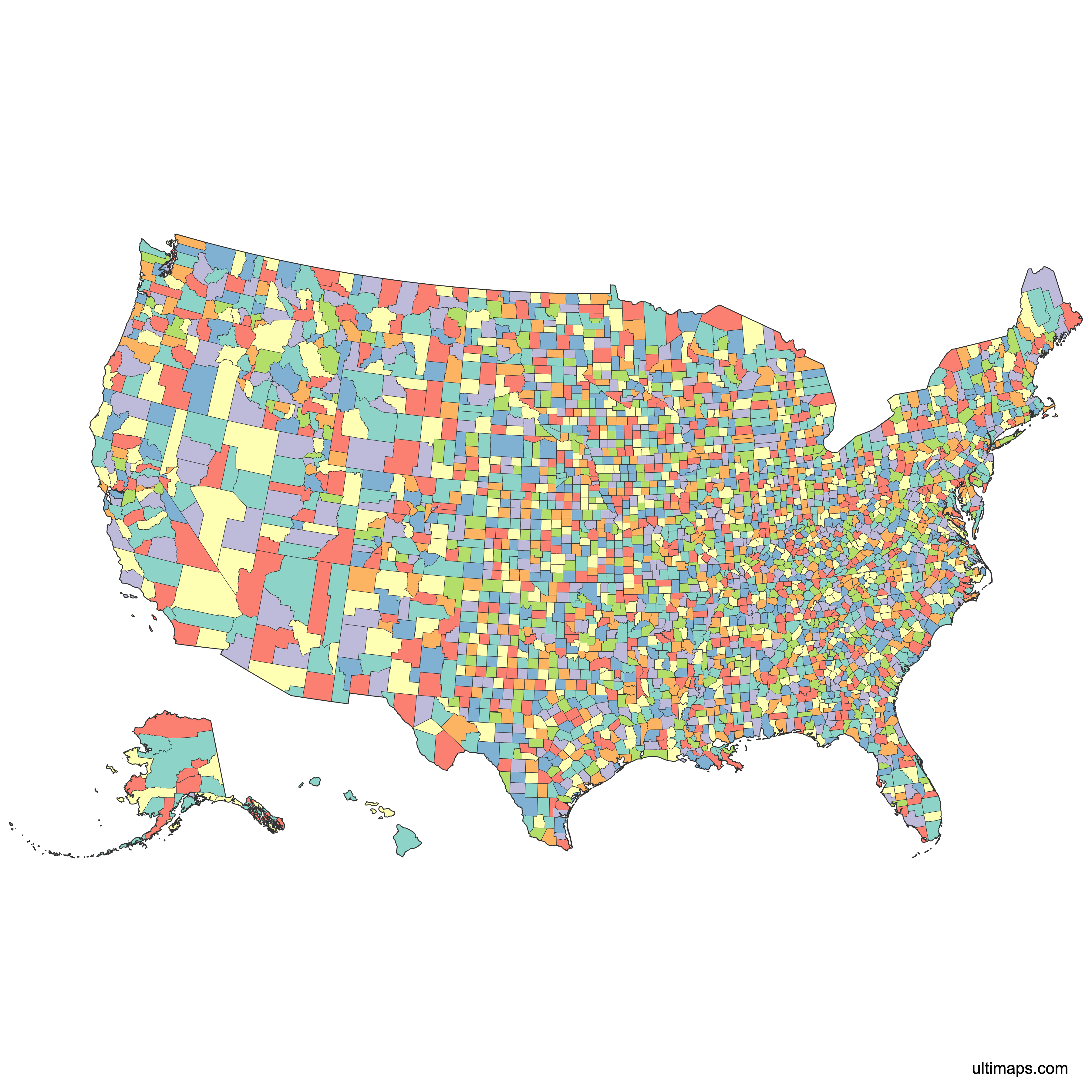 This map is divided into 3224 counties: