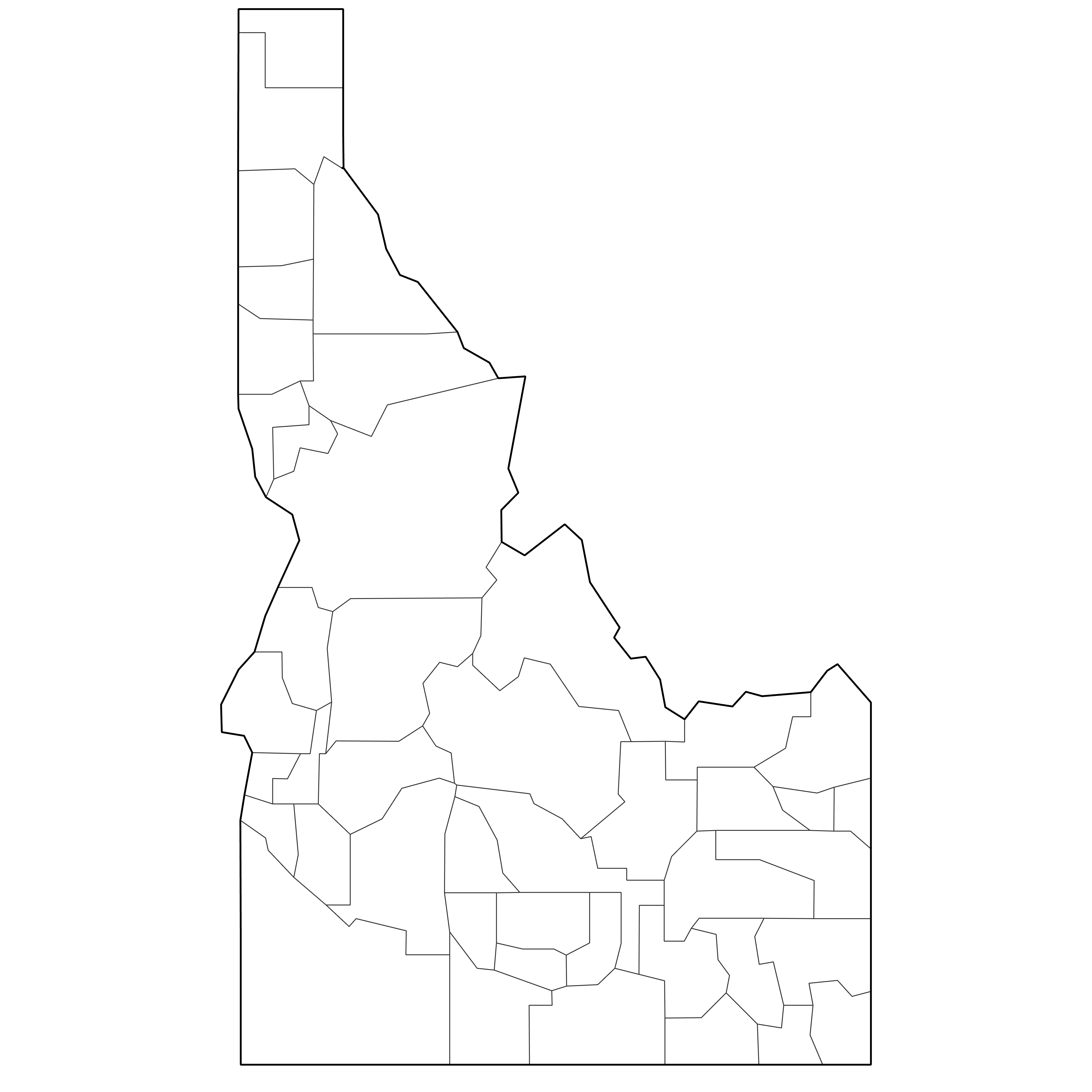 Below you can download free printable Map of Idaho Counties in high resolution PNG or SVG formats.