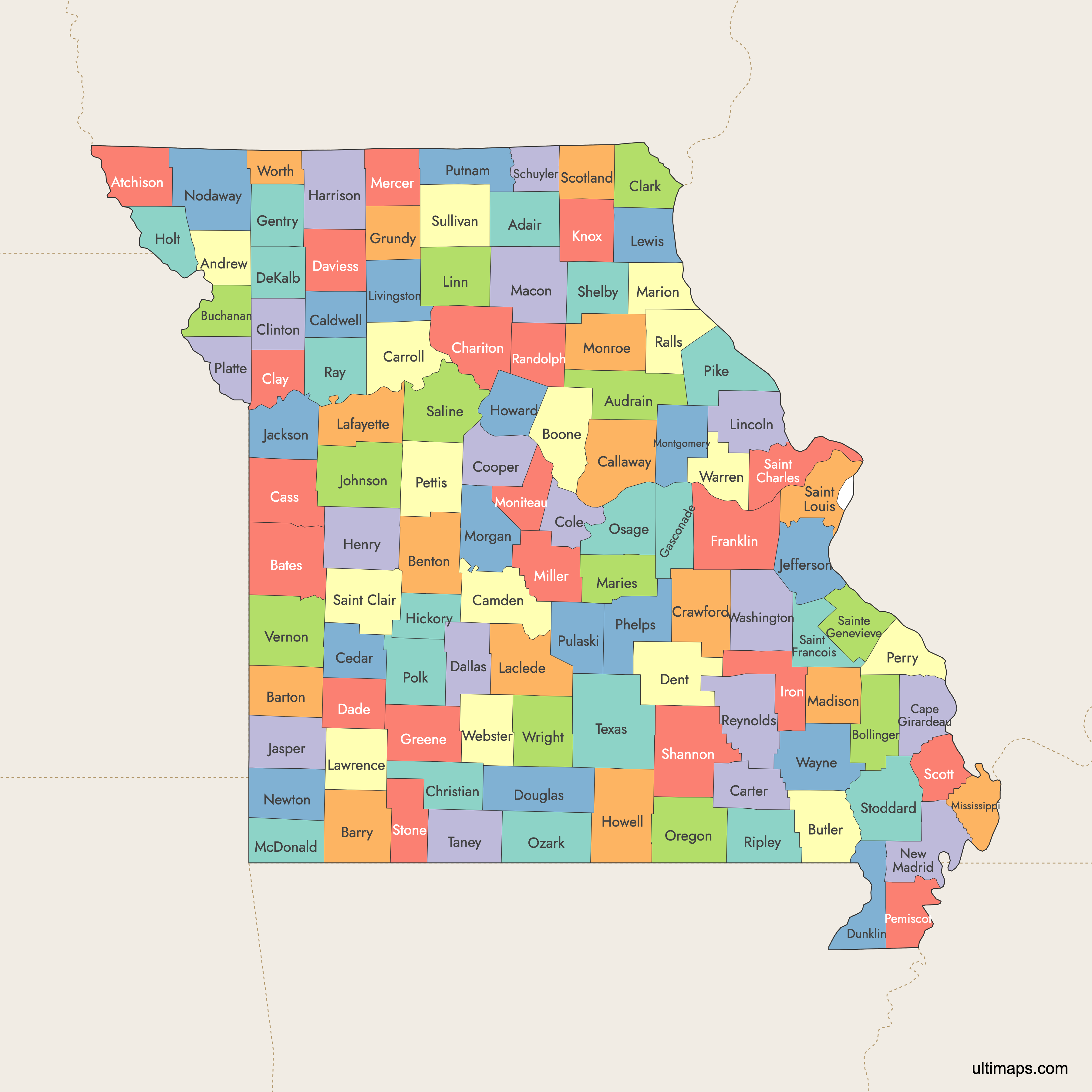Key facts about the Missouri counties map: