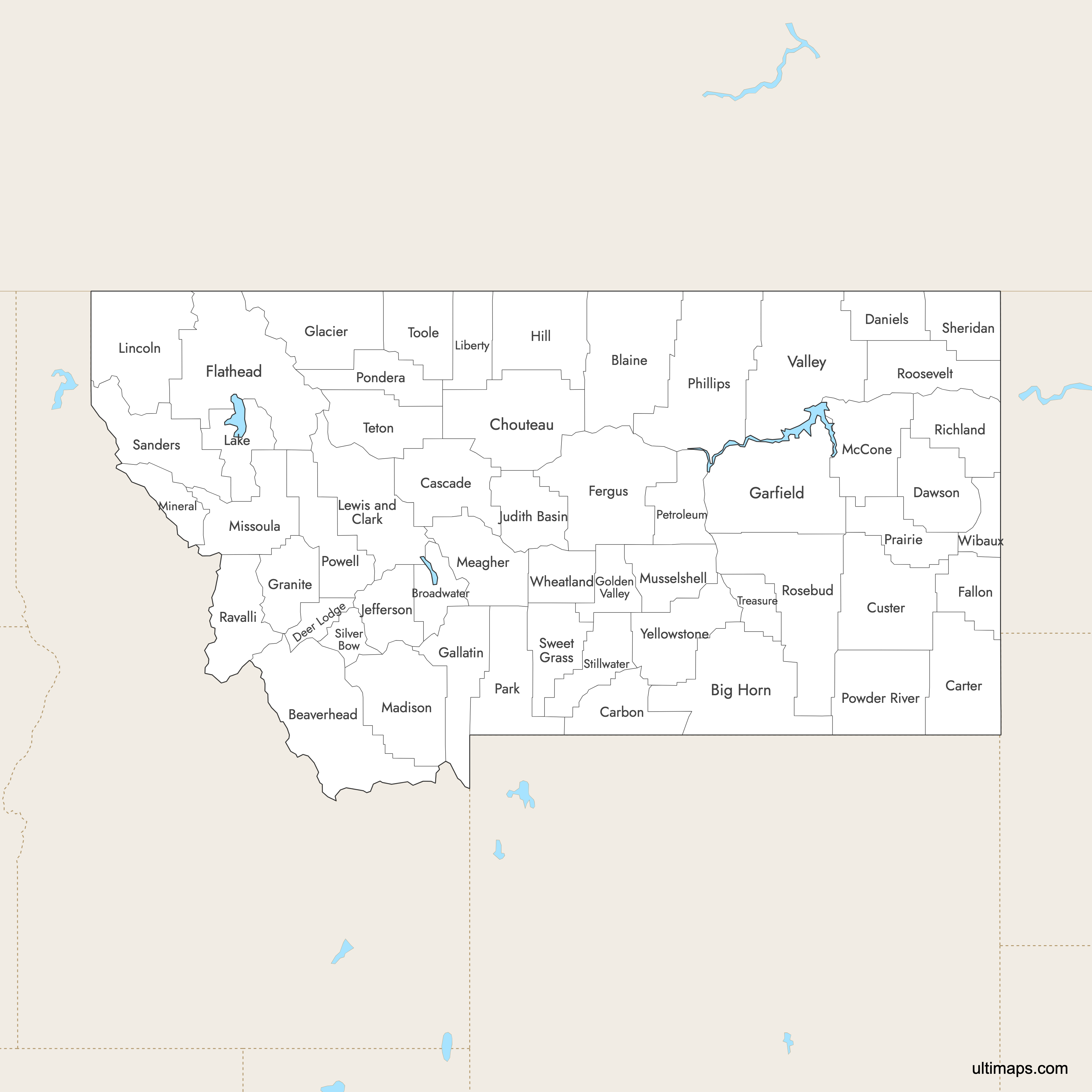 You can download free blank Map of Montana Counties and other maps in high resolution PNG, SVG and PDF formats from the blank maps section of the site: Download Blank Map of Montana Counties