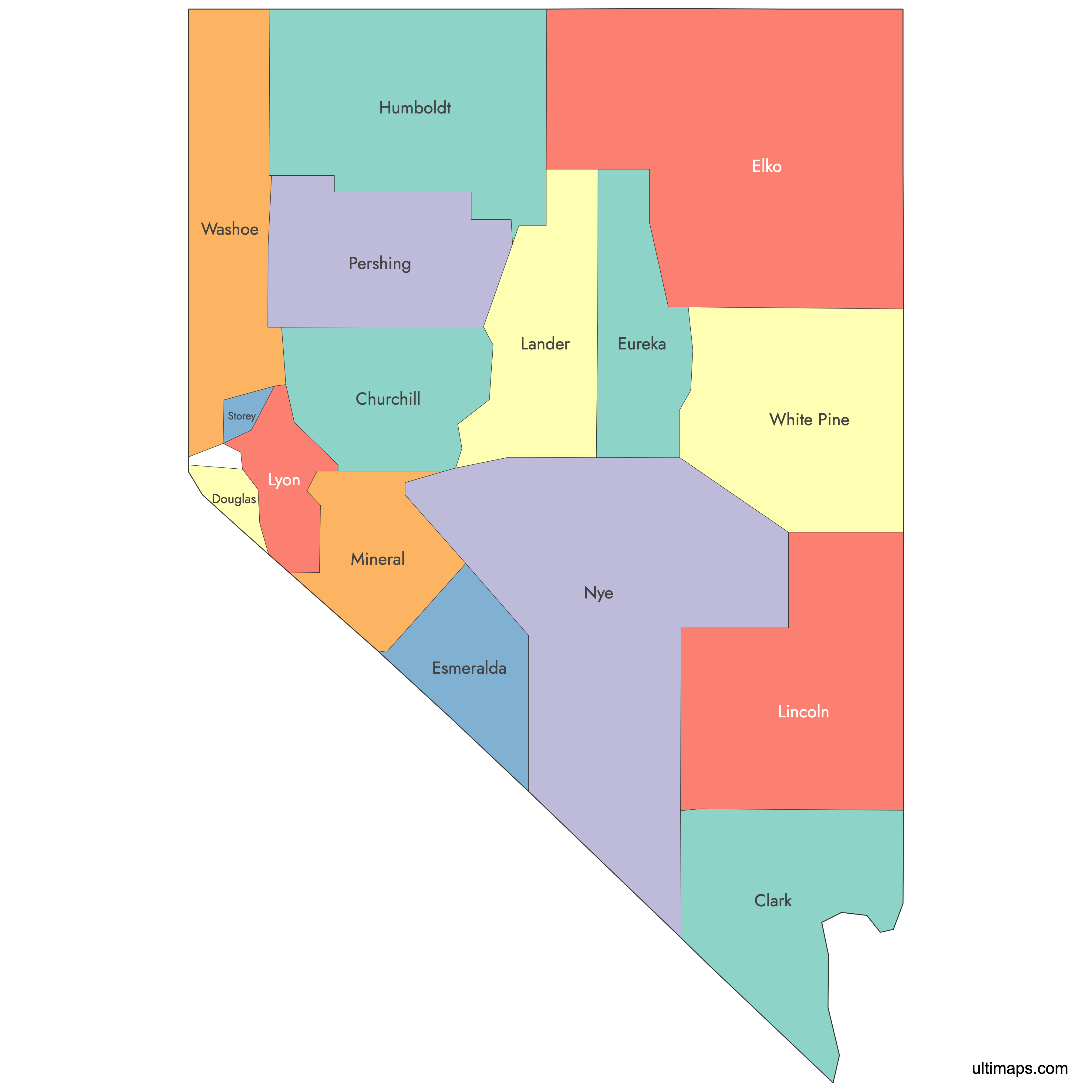 Create a custom map of Nevada counties and export it as a printable format or for use in your publication or presentation.