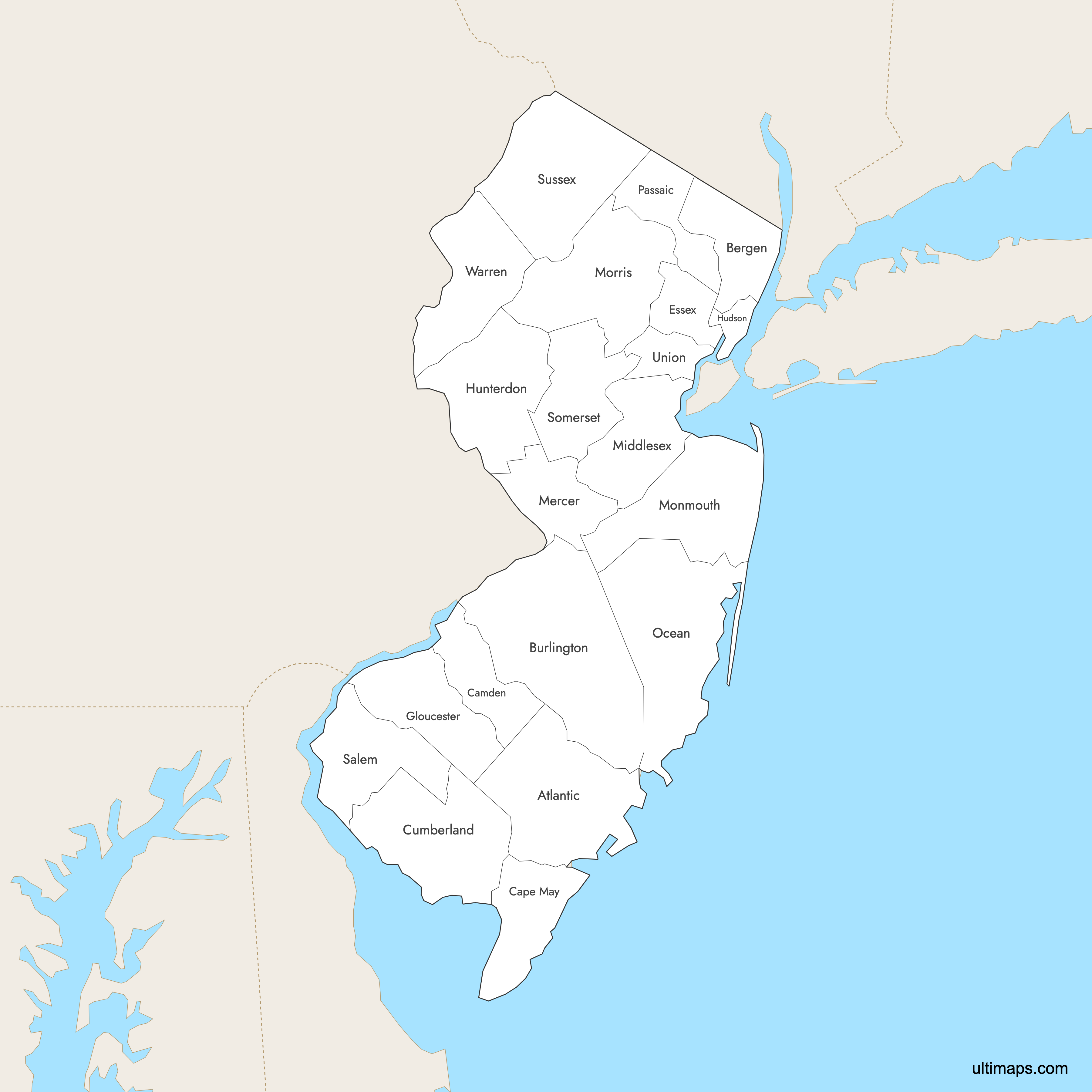You can download free blank Map of New Jersey Counties and other maps in high resolution PNG, SVG and PDF formats from the blank maps section of the site: Download Blank Map of New Jersey Counties