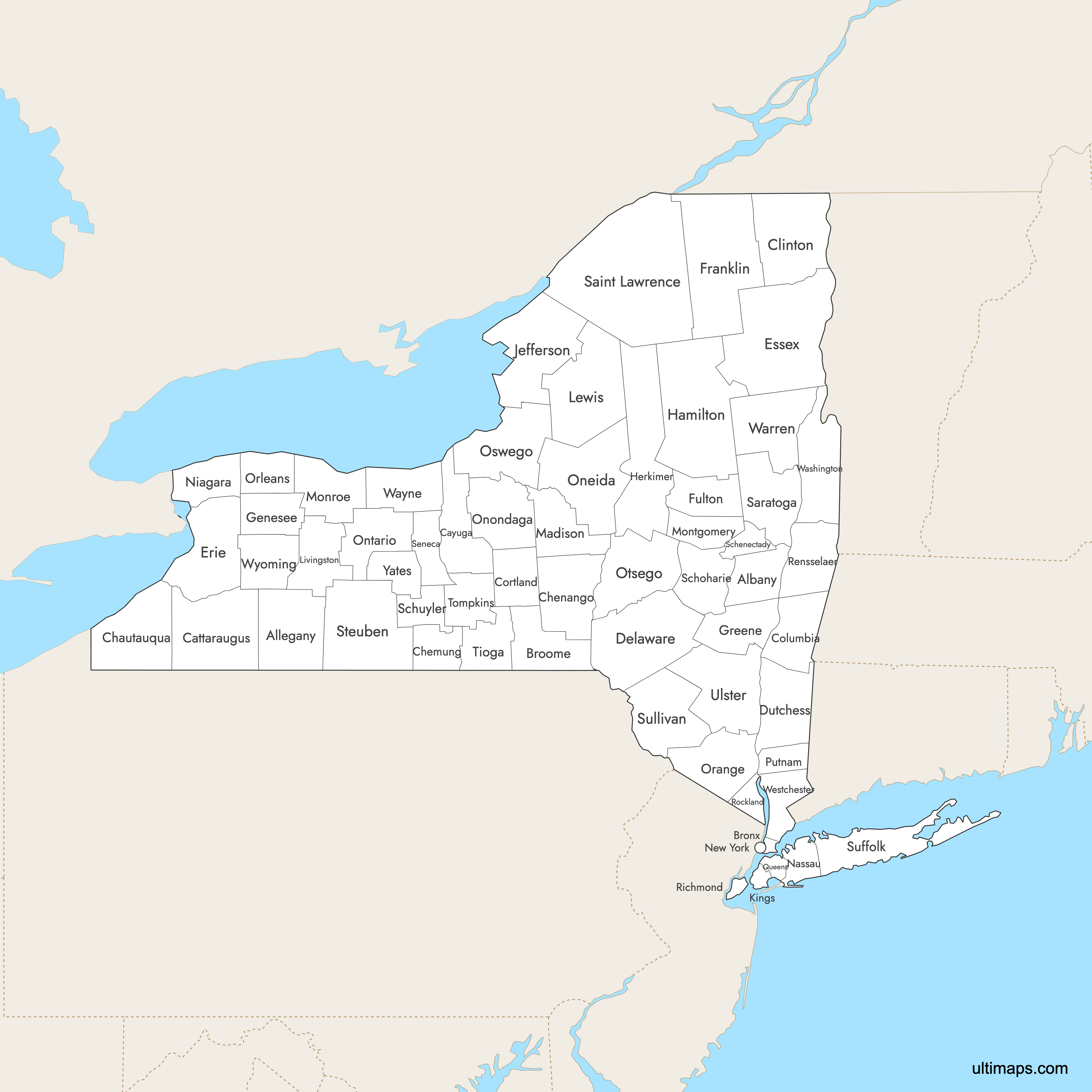 You can download free blank Map of New York Counties and other maps in high resolution PNG, SVG and PDF formats from the blank maps section of the site: Download Blank Map of New York Counties