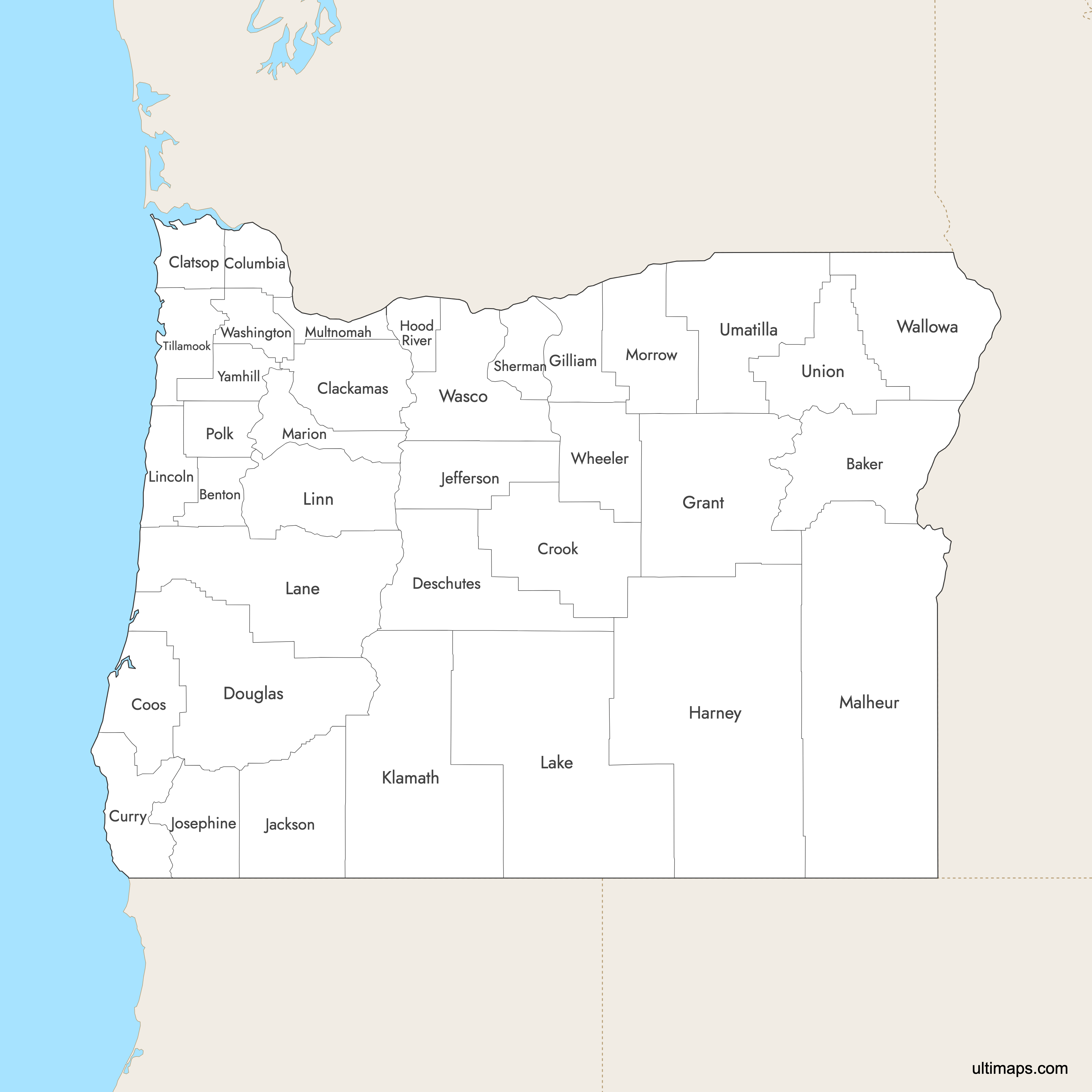 You can download free blank Map of Oregon Counties and other maps in high resolution PNG, SVG and PDF formats from the blank maps section of the site: Download Blank Map of Oregon Counties