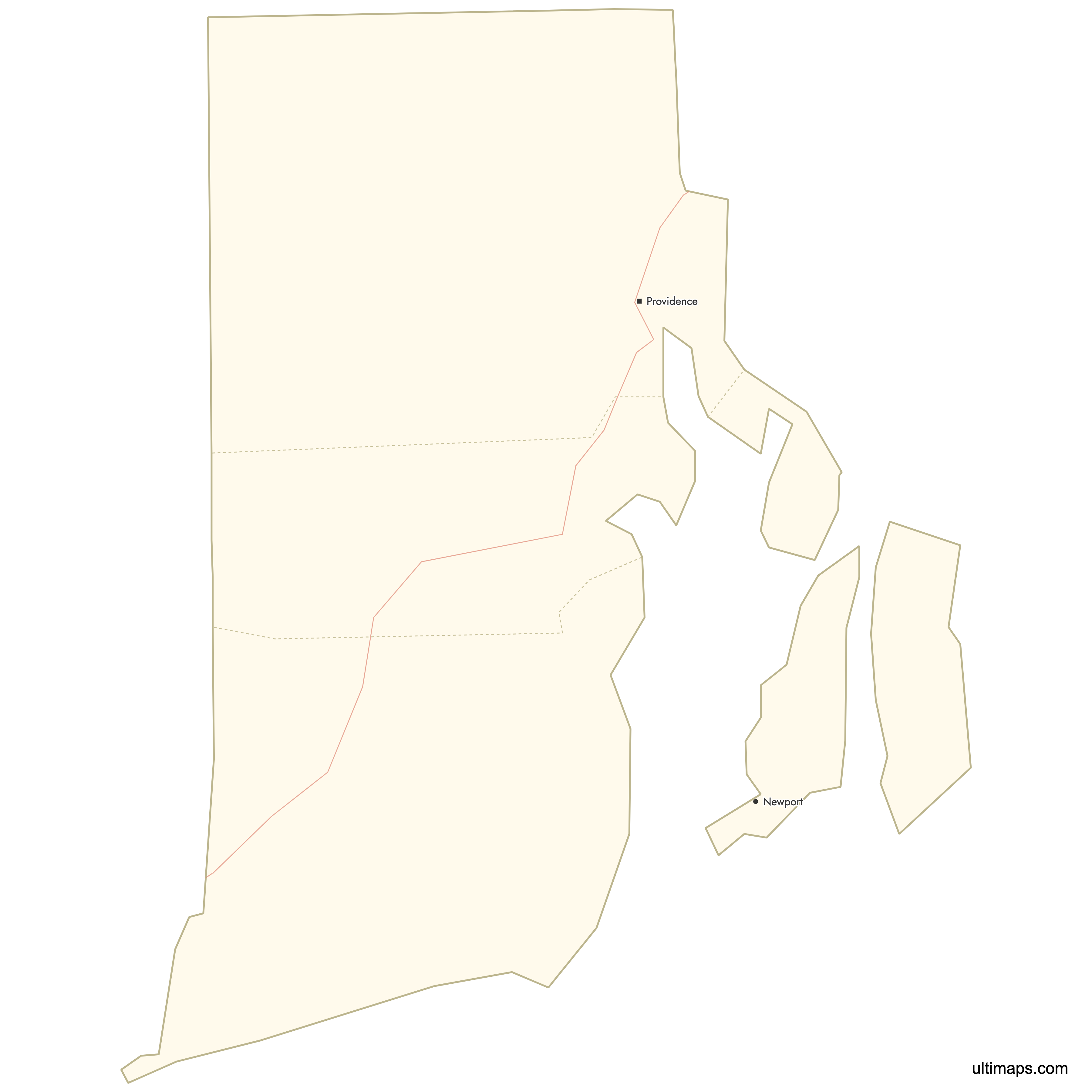 You can use Ultimaps to create custom maps of Rhode Island. Color-code counties manually or upload data, place pins, customize look and feel, and export to PNG, PDF, or SVG.