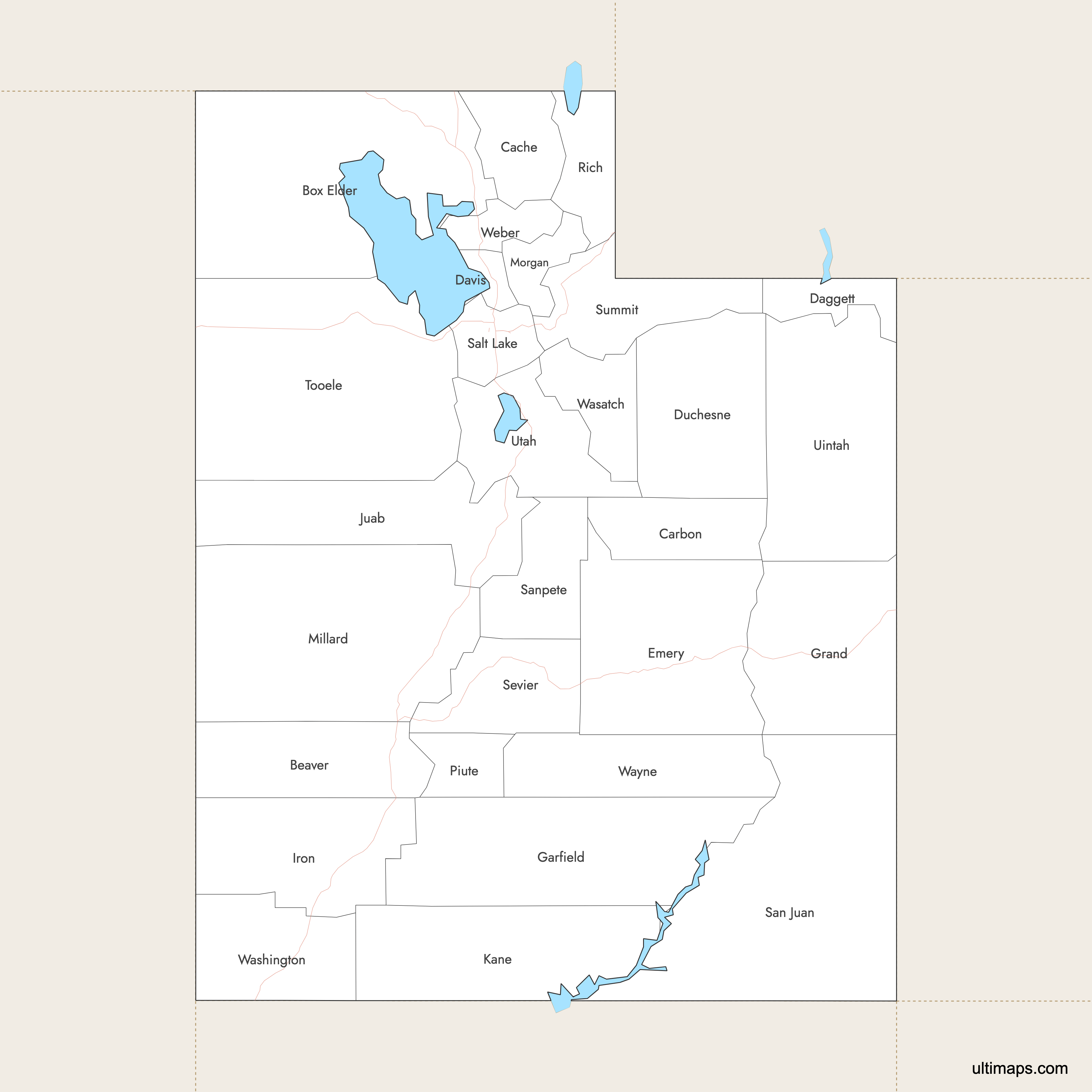 You can download free blank Map of Utah Counties and other maps in high resolution PNG, SVG and PDF formats from the blank maps section of the site: Download Blank Map of Utah Counties