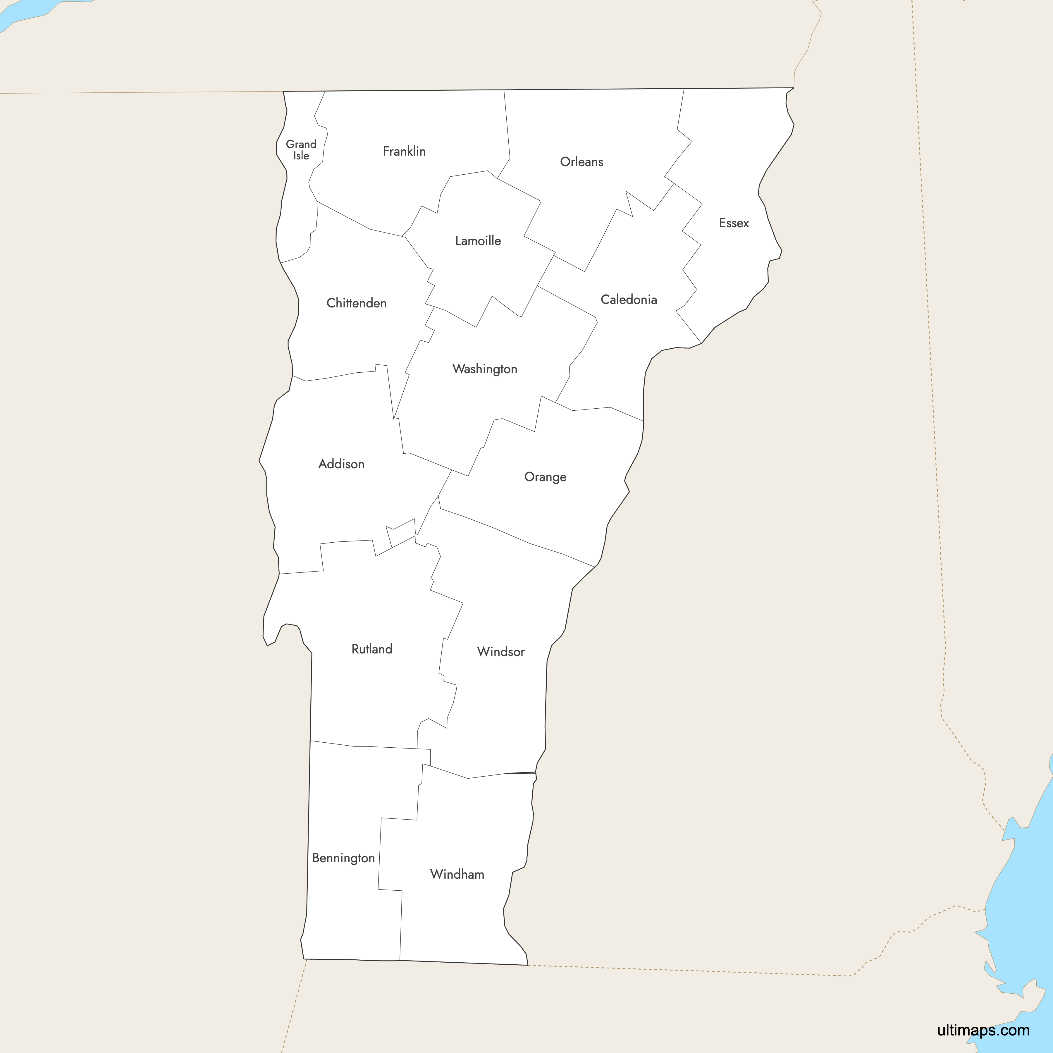You can download free blank Map of Vermont Counties and other maps in high resolution PNG, SVG and PDF formats from the blank maps section of the site: Download Blank Map of Vermont Counties