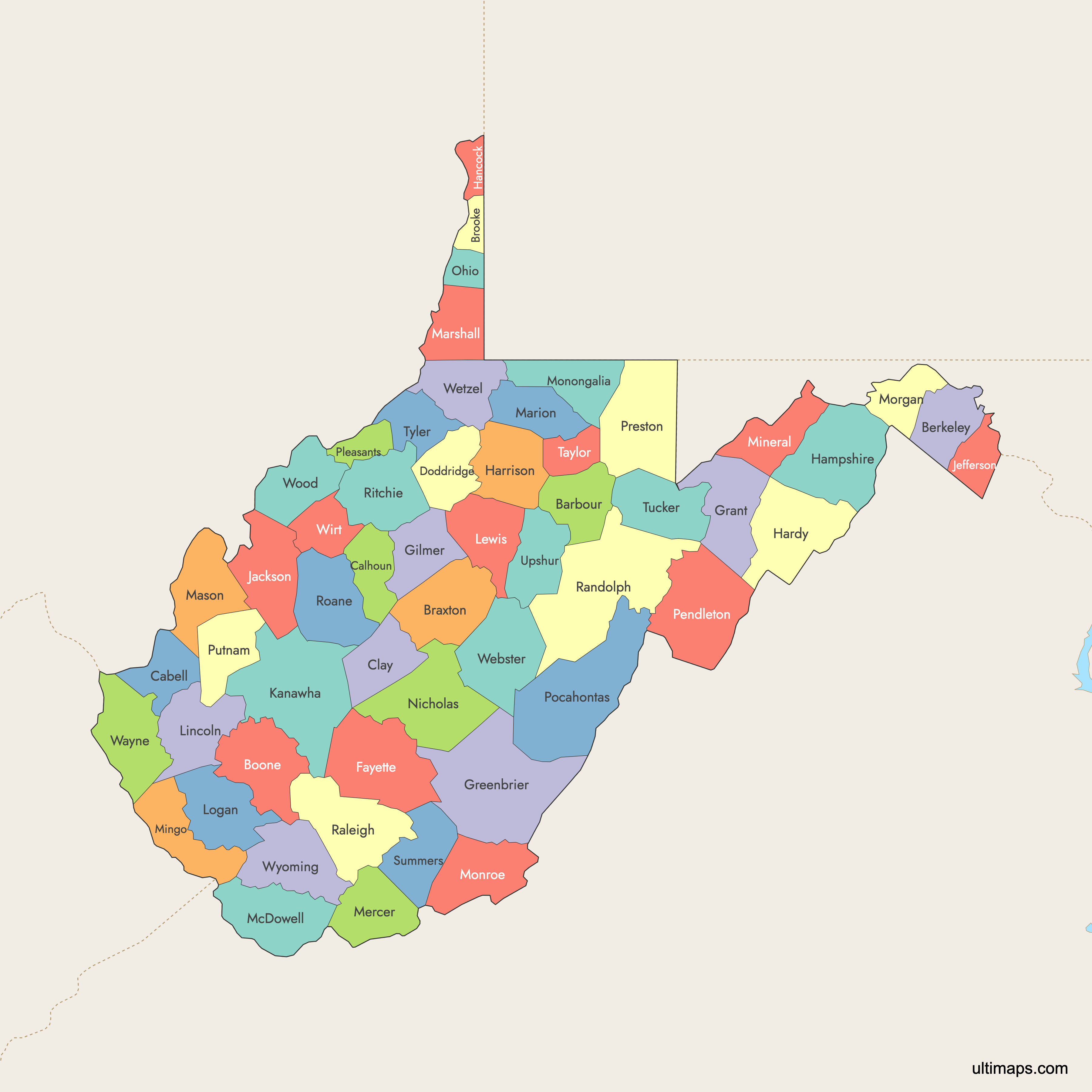 Key facts about the West Virginia counties map: