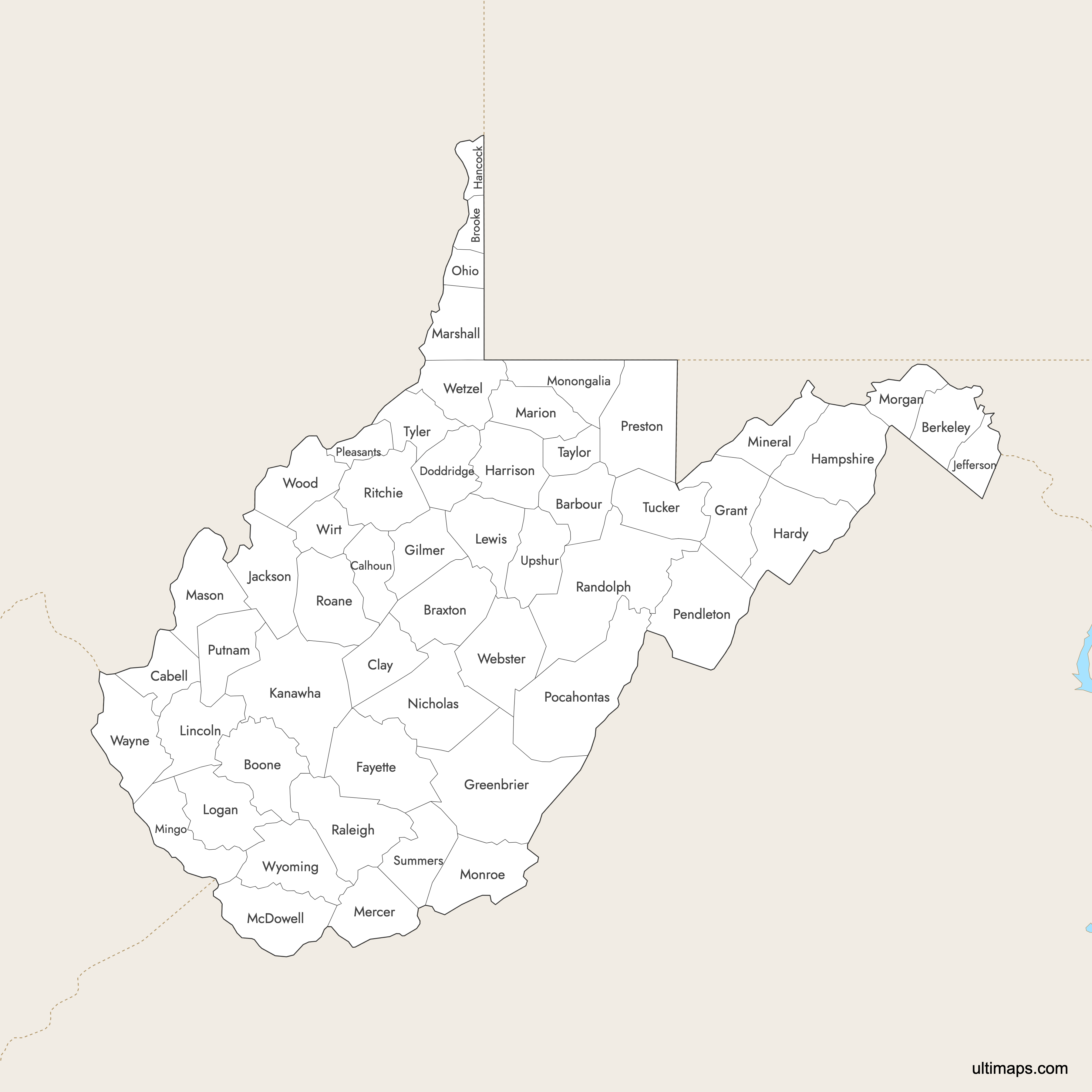 You can download free blank Map of West Virginia Counties and other maps in high resolution PNG, SVG and PDF formats from the blank maps section of the site: Download Blank Map of West Virginia Counties
