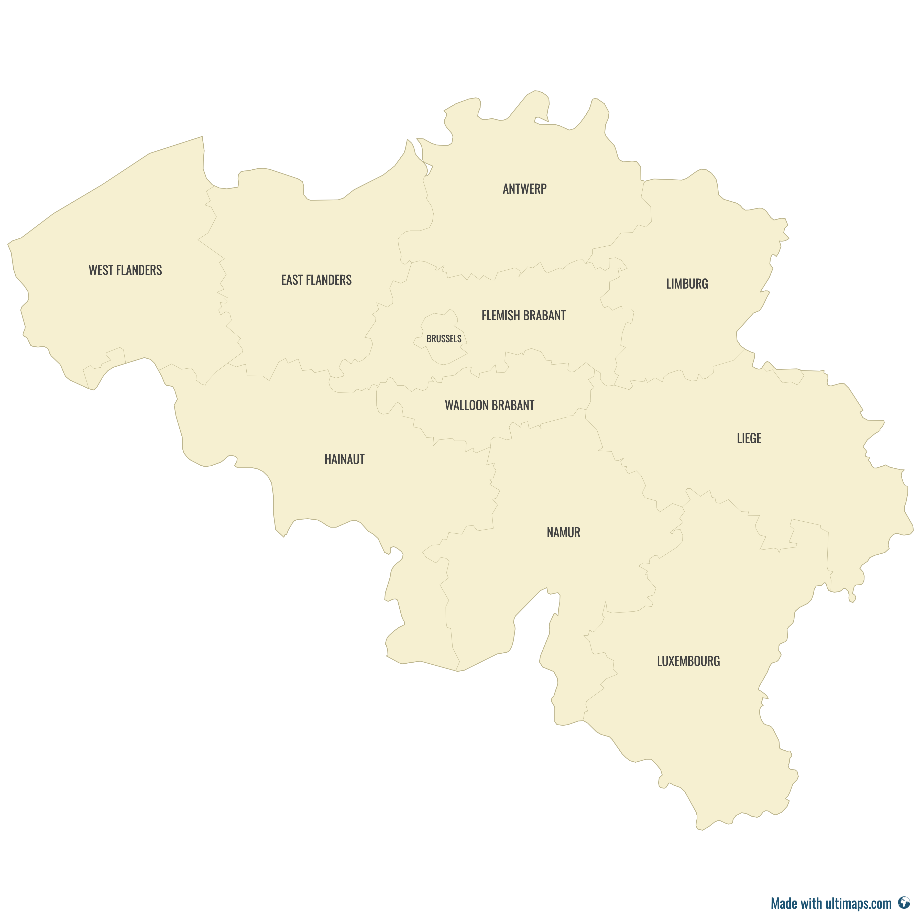 Below you can download free printable Map of Belgium Provinces in high resolution PNG or SVG formats.