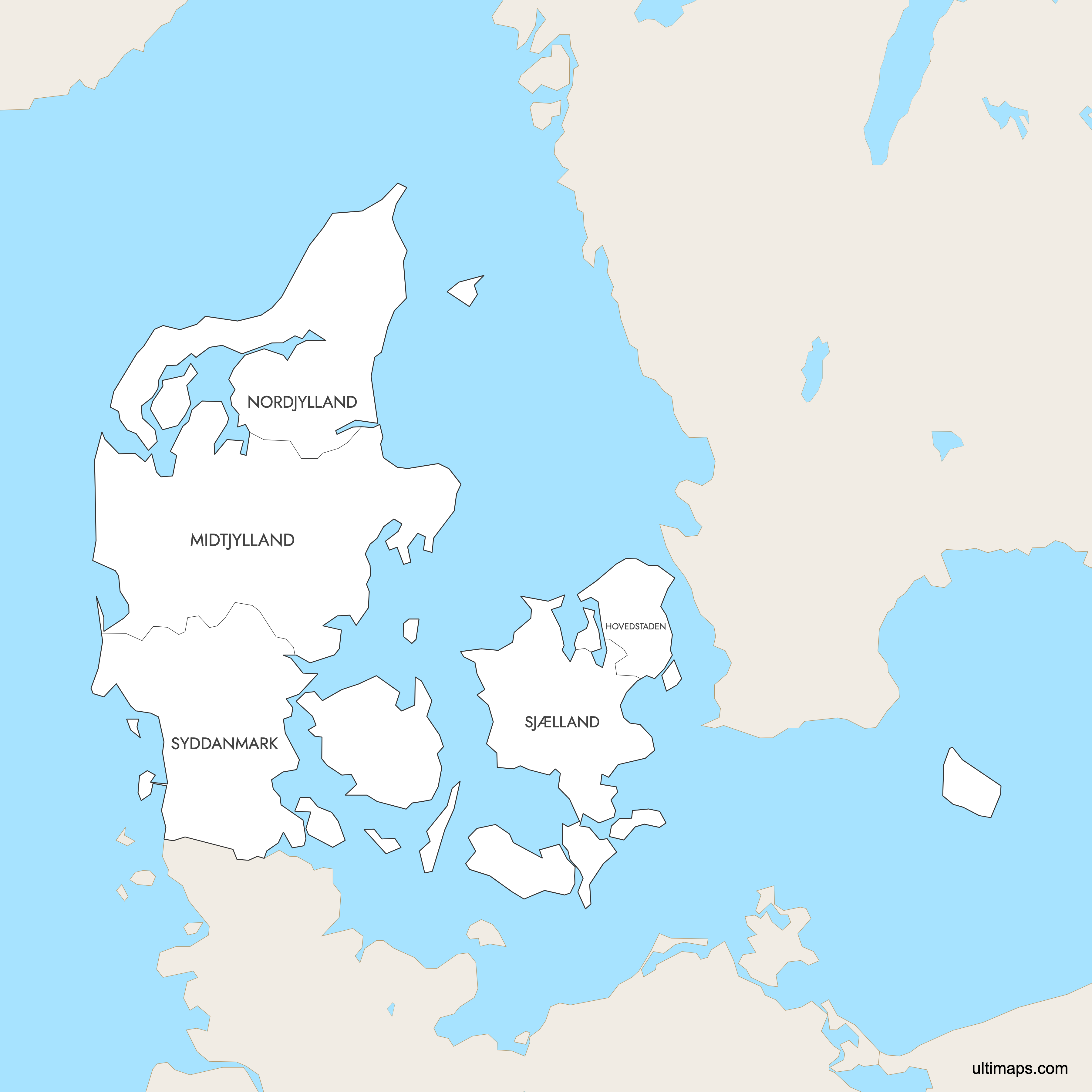 You can download free blank Map of Denmark Regions and other maps in high resolution PNG, SVG and PDF formats from the blank maps section of the site: Download Blank Map of Denmark Regions
