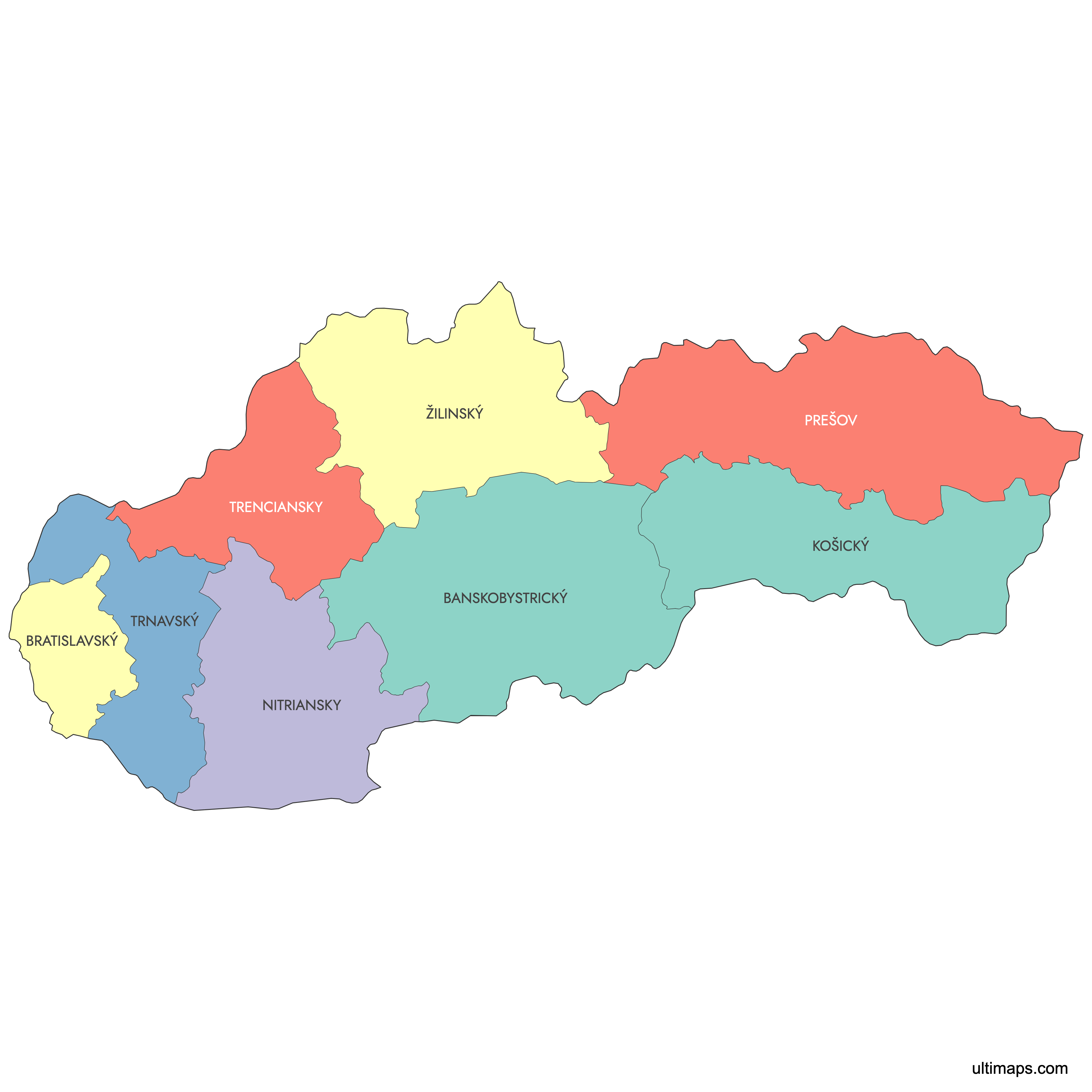 You can download free blank Map of Slovak Regions and other maps in high resolution PNG, SVG and PDF formats from the blank maps section of the site: Download Blank Map of Slovak Regions
