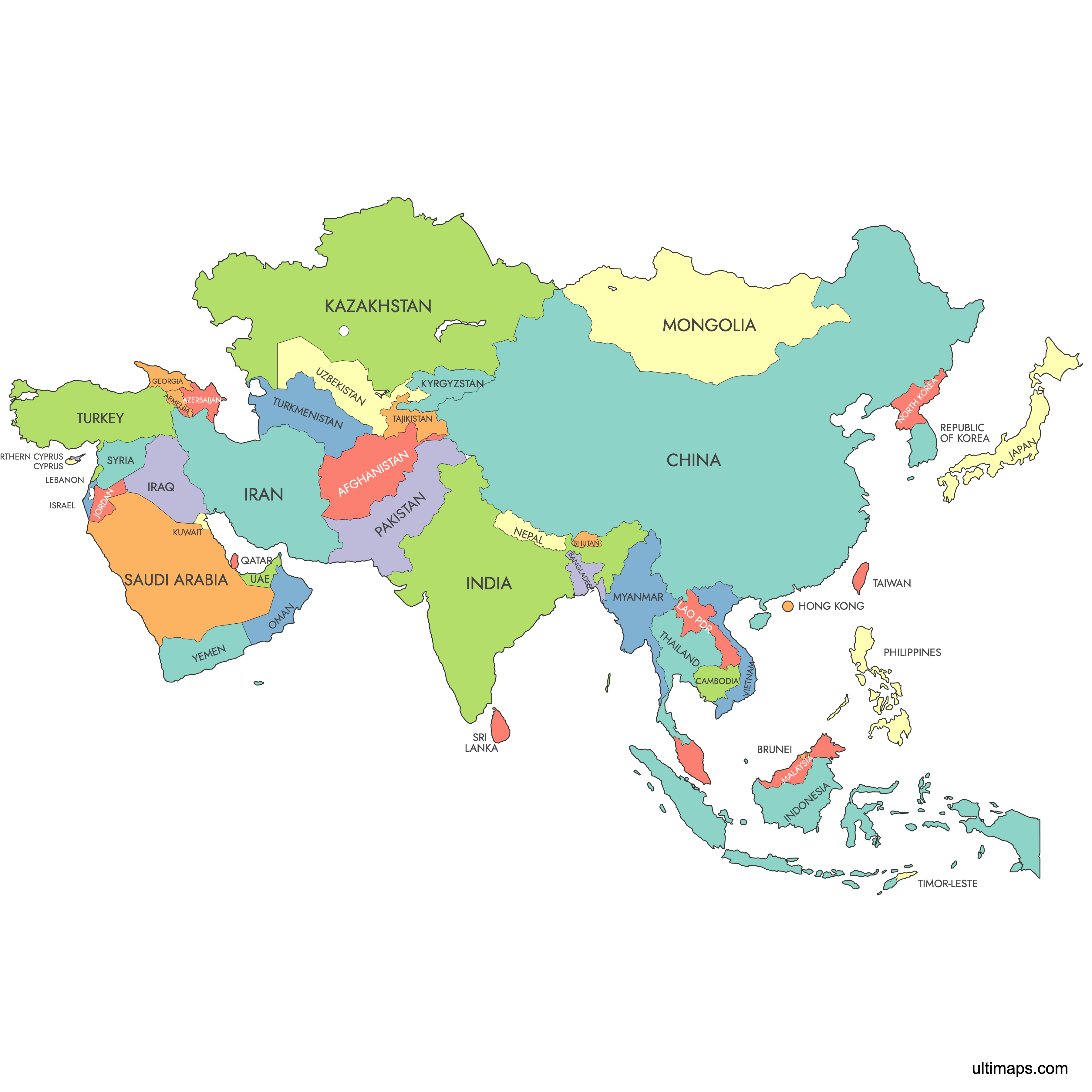 You can download free blank Map of Asia and other maps in high resolution PNG, SVG and PDF formats from the blank maps section of the site: Download Blank Map of Asia