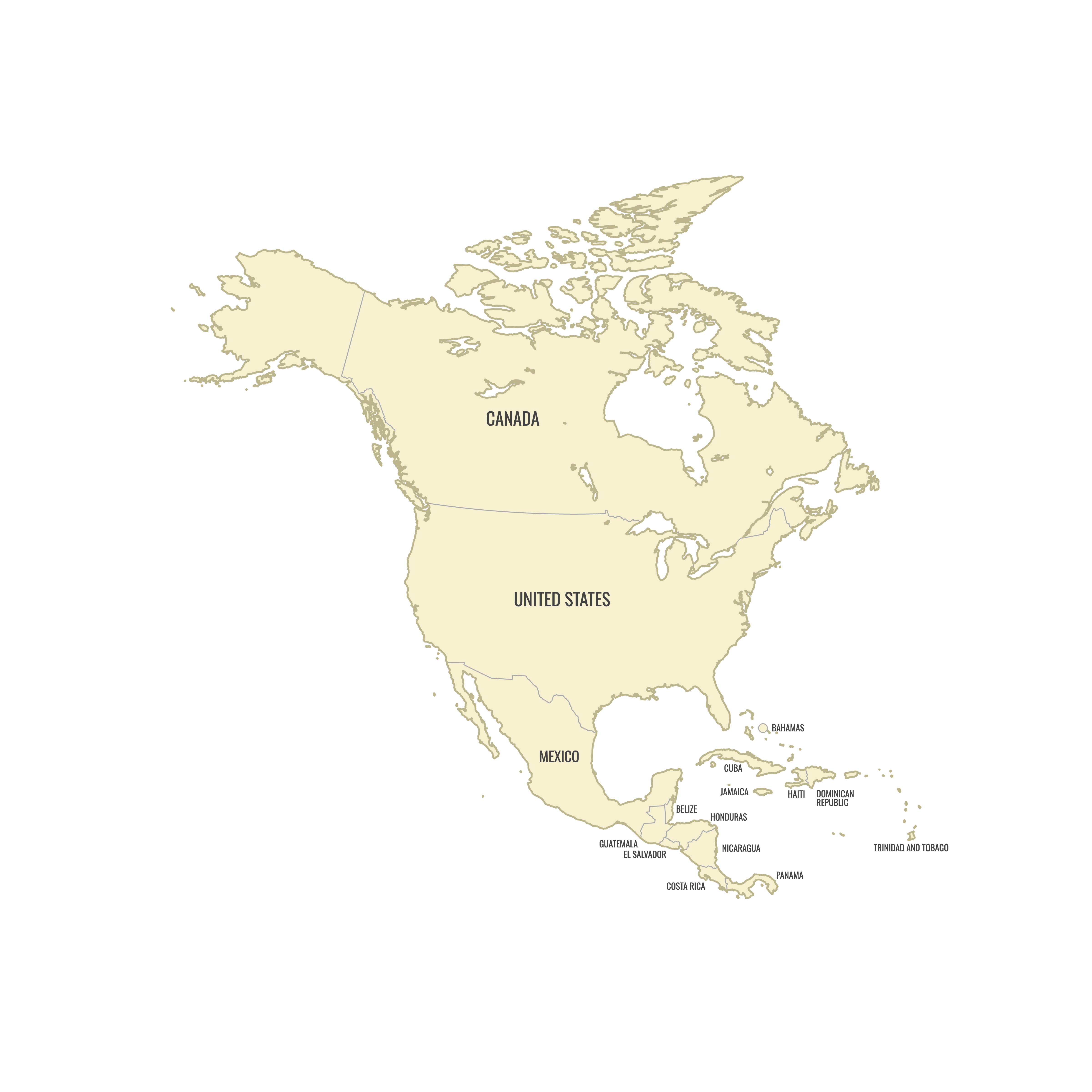 Create a personalized map of North American countries with our extensive customization features, perfect for those wanting to print or extend their maps further. Export your map in high-quality PNG or SVG formats, suitable for professional use or educational projects.